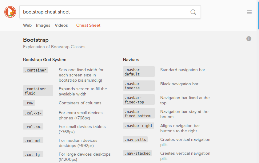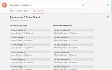 It’s not just languages that get DuckDuckGo cheat sheets; frameworks do too! The two framework behemoths are currently represented: Bootstrap and Foundation.