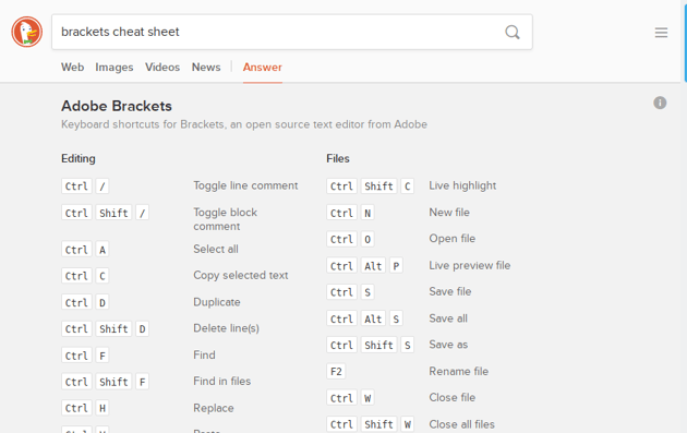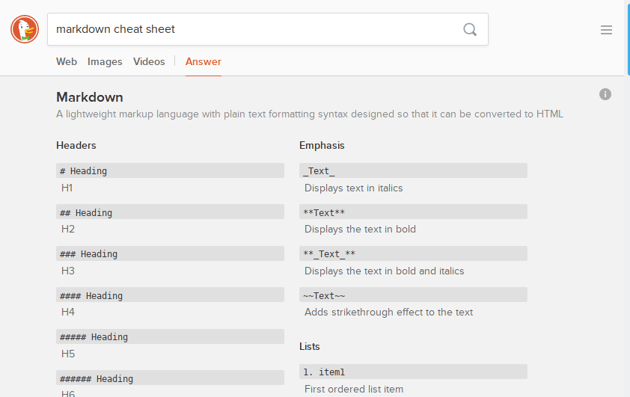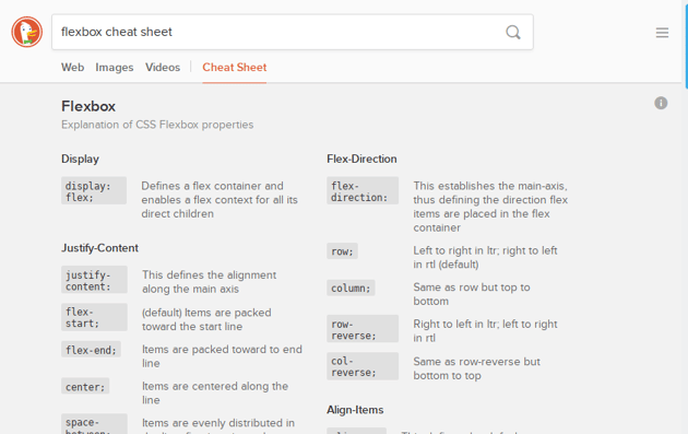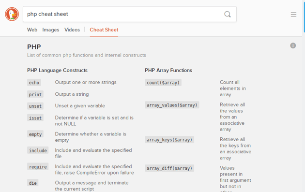 The search engine DuckDuckGo is best known for its privacy-respecting, tracking-free web searching. But did you know it can also be a web designer’s best friend through its long list of in-built cheat sheets?