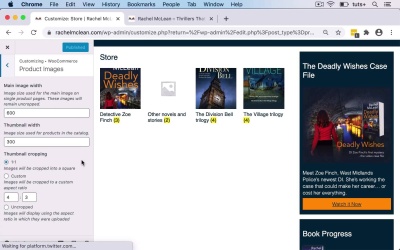 Hello, and welcome back to this tuts+ course, on getting started with WooCommerce. We've now got our product set up, and we've assigned categories and tags to them. And the next thing to do, is to use those categories in the way they're displayed in the store. And to do that we use the customizer. So if I go to appearance and customize, And I'll select WooCommerce, Product Catalog. So here's our store page. The moment you can see the images aren't showing up quite right, because they're square thumbnails. We'll fix that in a moment. First we're gonna configure how they're gonna display. So I'm gonna show categories and products. So you can see that we need to add an image for this other novels and stories, which I'll do shortly. And here we've got each of our series listed. Now alternatively, we could just show the categories And then if you clicked on that, you'd see all the books. So that's another option. So in fact, that's what I'm gonna do. And then in the category pages, we're in a category now, you can show products, subcategories, or both. Now we don't have any subcategories. So I'm just gonna show products. And then we have sorting and we'll stick with default sorting for this. Now how many products per row do we want? I'm gonna change this to four. And the rows per page. Hang on a moment, it seems to us Got a bit weird. So there's four, and then rows per page. We're not gonna have more than four rows. If we've got four books being shown across, so we'll stick with that. So I'll click Publish to save that. And then I'm gonna go back to some more WooCommerce settings. And I've got the product images here. Now at the moment, these are shown is square one to one images. So I'm gonna customize that. We can use a custom aspect ratio, that's four to three which is wrong. So what I want to use here is five to eight. And then we get our books laid out as you would expect. A little bit narrow, so let's try five to seven. Note they're being cropped a bit. So let's stick with five to eight. There we go. So we've now got four of those listed next to each other. Now let's have a look at what we get if we go in a category. And there we've got three books next to each other with the prices and the buy on Amazon or add to cart. Depending on what we've set it up as, because that one is an external product. So again we'll publish that. Okay, back. Now here you can configure restore notice if you want And you can also configure the checkout. I'm gonna hide the company name field. I'm gonna make the phone field optional. In fact, I'm going to hide it. I don't need people's phone number. Privacy Policy, we've got terms and conditions. I'm gonna have that going to the privacy policy right now. But we need to add Terms and Conditions page later on. And then the privacy policy. This is some text that we can edit if we want to. So here you can see this is the checkout page. So again, I'm going to publish that because I'm happy with that. I'll close the customizer and we're back in the products. And if I go to the store page. So now we need to add an image for this. So let's go into our category, edit that and I'll add an image of one of the books that comes into that category. Now if we've got the store. You can see that we've got those. So that's how you configure the way that your store looks, using your products and using the images in the products. In the next part of the course, I'm gonna move on from product categories to something a little bit more complex. And that's product attributes and variable products. And I'll show you how you can use those to make more than one version of a product available. See you next time, and thanks for watching.