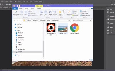 Hello, and welcome back. In this lesson, we're gonna take a look at a Photoshop plugin that we can use to convert our images into WebP or WebP images. And I'll include the URL for this plugin in the course notes for this particular lesson. And once you come to this page, if you scroll down to where this Ps icon is on the left, we can see some information about the plugin. You can even make some PayPal donations to the author in order to support the use of the plugin. But it is a free plugin, you can download it for free, and your download links are gonna be over here on the right. So if you're using a Mac, you're gonna use the second to last column here. I'm using Windows here, so I'm gonna use Windows 64-bit. So this is gonna download a Photoshop plugin file. And you'll just copy that file into your plugins directory for Photoshop. Once you copy that over to the plugins directory, then it's gonna be available for you in Photoshop and it's very, very easy to use. So what you're gonna wanna do is open up a JPEG file and I would not suggest trying to save a PSD file or a new file that you've created in Photoshop. I wouldn't suggest trying to save one of those as a WebP file because it doesn't work very well that way. It does a better job of converting existing files. So if you've built something in Photoshop, save it as a high quality JPEG or PNG first and then take that PNG file or that JPEG file, open it up in Photoshop and then convert it. And the way we convert it is very simple, we're gonna go to File, you're gonna notice I've got a simple JPEG file here. We're gonna go to the file menu. And since we have our plugin installed, when we go to save as, you'll notice we're not doing save for web, but when we do save as in our save as type dropdown, you'll notice we have two new options, WebP and WebP Lossless. And as we mentioned before, we can do lossy or lossless images with WebP, so we can treat our images just like a JPEG or like a transparent GIF or transparent PNG. If we prefer, the lossless version would be more like a PNG file. The lossy version, it would be more like a JPEG. So if you're converting a JPEG, you're gonna wanna use this top selection here. Now, let me go ahead and point out that I have not had a lot of luck using the lossless version with this particular plugin. I've seen other people use it successfully but I have not been able to use it successfully and there are no options for it. So it's not like I'm just choosing the wrong options, I just haven't had a whole lot of luck with it. But it's probably a good idea to keep your eye on this plugin because he's constantly working on it and improving it and the WebP version works really well. So we're gonna select WebP, we're gonna be converting our JPEG into a WebP file. And I'm gonna click on Save, and that's gonna give us this little pop-up with some options. So I believe by default, your encoding quality is gonna be set to around 75. I believe that's what it was set to when I first opened this up. You can usually get away with a little bit lower quality, I'm gonna set it to 70. And I'm gonna leave the rest of these options on their default, and I'm gonna click on OK. When we do that, I'm gonna jump into my file folder. And now next to my nature-10.jpg I also have a nature-10.webp file. And you'll notice you've got the Chrome icon here because Chrome is my default browser. And that is what is currently set up by default to open up webp files. Now, you can also open up webp files in Photoshop as well, so that option is available for you. But if we double-click on that, it will open it up Chrome, and we can see in Chrome just fine. So now, if I go into my sample files folder and hover over our JPEG file, you'll see that it was 479 kilobytes and the WebP file, if we hover over it is only 80 kilobytes. And there's no discernible difference in quality. If we were to copy this, open a new tab here, and then change this to .jpg and open up that image there. We can go back and forth between these two files. And usually, when you go back to a WebP file, sometimes you've gotta refresh the page to get it to show up. But if we look at the quality of this image, next to the quality of the JPG image, the JPEG has a little more detail. And then if you look really close, but the quality is not that much different. So we could go up on the quality of our WebP file here. And it would, especially in the deeper parts of the water, it looks a little fuzzier. So we could go back to Photoshop here and that's our Webp file. So let's open up our JPEG file. And let's save it again, but let's bump up the quality a little bit. So we're gonna go to WebP, click on Save. Yeah, I wanna replace the one that's there, and this time I'm gonna bring the quality up to about 80%. Click on OK, and then we'll open up that file, have to close the one that's there. Let's open up that file in Chrome, and I can see a little bit better detail. We could go up even higher on that if we wanted. Again, if we hover over that at this point, it's only 95 kilobytes. So it's still significantly smaller than the JPEG version of the same image. Now again, as I mentioned, this particular plugin for me hasn't worked very well at all with PNG files or with the lossless versions. So if we go to File > Save As, and then save it as WebP Lossless, you'll notice first of all that when we save that it as lossless, it doesn't actually change the file extension for us. We have to do that by hand. We're just gonna change that to .webp and click on Save. And if we close this and open up that file, that new Acme webp file here. If we open it up in Photoshop, it looks fine. However if I open it up in Chrome, you'll see it doesn't show up at all. And so I haven't had a whole lot of luck with the plugin as far as lossless images are concerned. But it does do a great job of converting lossy images. And in the next lesson, we're gonna take a look at a tool that makes this even easier that all