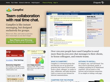 Campfire is a real-time chat application for groups. It's entirely web-based, and can be used from anywhere, even your iPhone. There's a limited free plan that allows chat among up to four people, and paid plans start at $12/month.