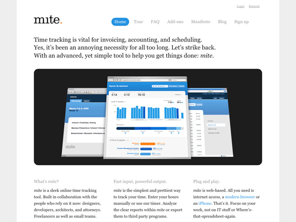 Mite is an online time tracking tool, perfect for designers and other creatives. It lets you collaborate with team members or share reports with clients. There's a 30-day free trial, and after that Mite is just 5€ per user.
