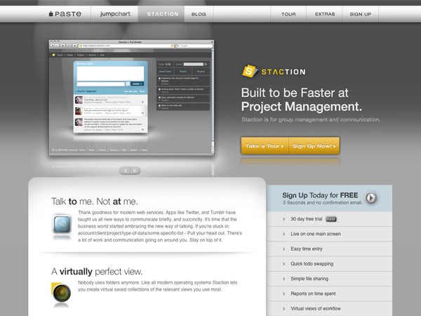 Staction is a project management and communication tool that helps you keep your entire team up to date with what you're doing. With paid accounts (starting at $7/month) you get unlimited project tags and posts, and works both in your browser and through API apps, including an AIR desktop version and a Mac dashboard widget.