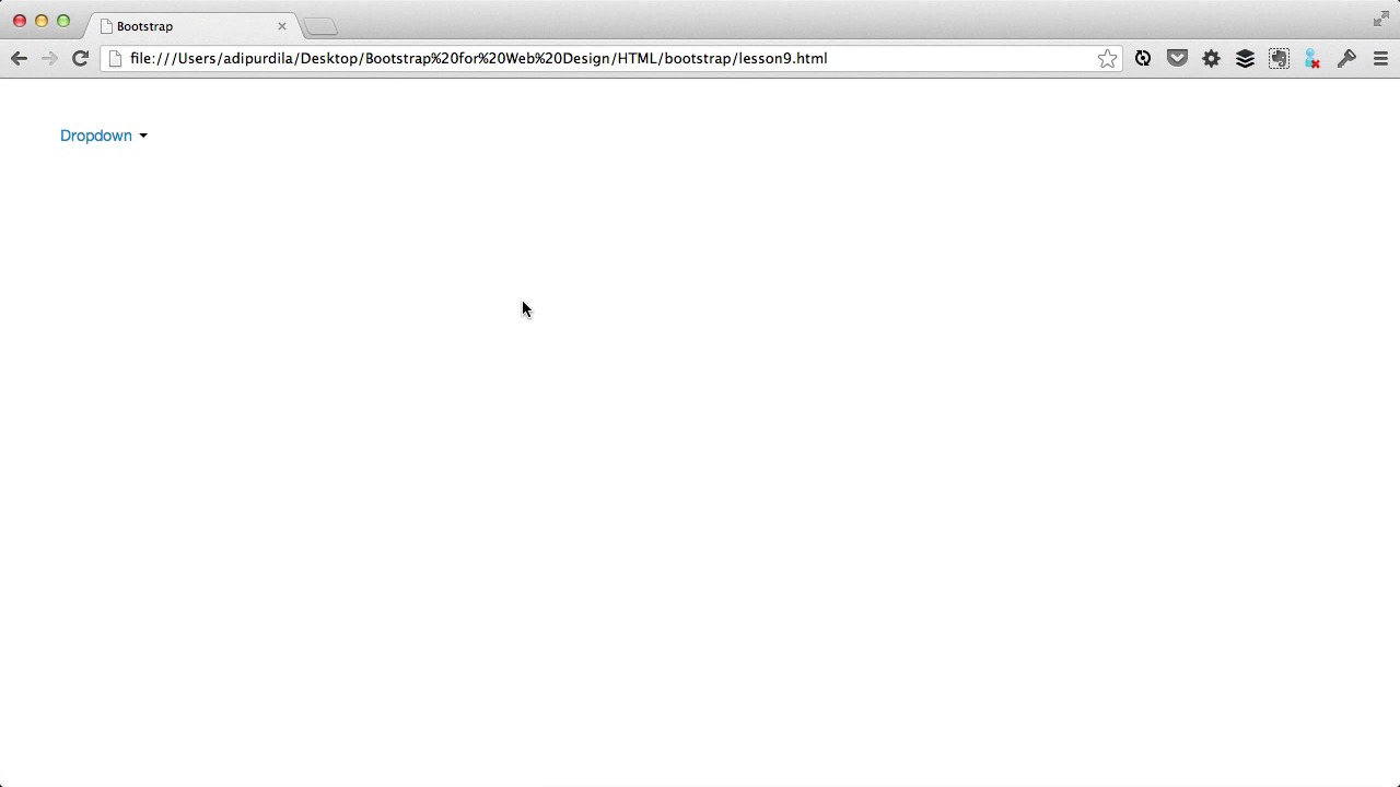 Bootstrap offers dozens of components that will help you create a dynamic website. From progress bar to navigation controls, we'll have a look at all the major ones. Let's begin with drop down menus.