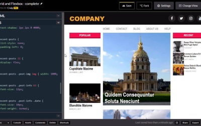 In this lesson, we are gonna take a look at our right most column in our web layout here. And we're going to set this up so that our image thumbnails are going to be to the left and the text is going to be over here to the right. Now, we're not really gonna deal with any media query's or responsive options in this particular course. But you would definitely wanna take this a little bit further so that once you get down to a smaller browser size such as this, that it would end up looking like it does now, with the image on top and the text on the bottom. But again, because of the brevity of this course, we're going to skip over the responsive options. And just build it as though we knew our browser was gonna be large, so let's preview our HTML for that right column. We have our sidebar2 div here, and inside that we have an h2 with a class of sidebar-heading and then under that we have an unordered list with an id of recent posts. But, what we really wanna focus on here are the list items within that recent posts unordered list. These list items are going to be our flex containers because that's where we're going to set up our images to the left and our text to the right. So, you'll notice that our images are contained inside this div with a class of post-image and all of our text is contained inside a div with a class of post-info. And wrapping that in a container div makes it easier to set up our flex box layout. Because these are now direct descendants of that list item. So once you've opened up the CodePen listed in your course notes for this lesson. Go ahead and click on Fork to create a new copy of it. And then our new copy let's jump into our CSS. And in our CSS, we're gonna scroll down quite a bit until we find the recent posts items. And I wanna create a new rule for the list items within those recent-post, remember those list items are now going to be our flex container. So recent-post li, so we're gonna set the display of those list items to flex. And as you can see, that already gets us most of the way there. It's a little cluttered right now and we need to fix that, but that gets us most of the way there. Also I'm not setting it up for a browser size this small, so let's go ahead and make that a little bit larger to get a better idea of what it's gonna look like in a larger browser window. And I will leave it up to you to go in when we're done and create some media queries so that this will look good at all browser sizes. Now the first thing I see that I want to do here, is I wanna put a little bit of margin at the bottom of these list items so that there's a little bit more space in between each of these articles. So we're gonna go into this list item rule that we just created. And I'm gonna create a margin-bottom property here and set it to 14 pixels, which if you remember is the same gap that we gave to our overall grid system. The second thing I wanna do, is I wanna set up the image to be half the size of the info over here on the right, and we're gonna do that using the flex property. So just beneath our recent posts, I'm gonna create a new rule for the post-image class, which is that div that contains those images, and we're gonna set those images. We're gonna set the flex value of those images to 1. Which by itself doesn't do anything for us until we set the flex value for the other item inside that container div. And the other item is going to our post-info. Remember, this post-info class contains the header and the day of the week, or the date of that particular article. So, we need a rule for the post-info class. Let's just highlight everything here, except for the h3 and copy it. And then just above that h3, we'll paste it. So for this post-info class, I'm gonna set the flex value here to a value of two, so that it will be twice as wide as the image. Remember, when you use this flex value here, it basically just compares those two numbers. If one number is twice as large as the other number, then it will be twice as wide as the first one. And then I wanna do one more thing here, I wanna add 10 pixels of left-padding. So that the text isn't right up against the images. So we're gonna set padding-left to 10 pixels, and there we go. We've now got a really nice-looking sidebar over here on the right. And again, I want to encourage you to go in and fix that so that when you get to a smaller browser size, it doesn't look like this. Instead it would have the image on the top and the text below it. So I'm gonna leave that up to you, but for now hopefully you've got a really strong idea of how to use flex box and grid together to build your page layouts. Thank you for watching, and we'll see you in the next video.
