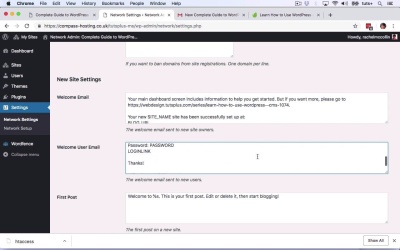 In this lesson, we'll configure the welcome emails and default first post for sites on the network.