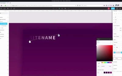 Welcome back to create a Themable Site Design in Figma. In the last lesson, we went through in setup our basic layer, and we set up some nice backgrounds, gradients, and we established our color scheme for this first design. Now we're ready to start adding some content onto the page. And we're gonna start by creating a nav section. That nav section is gonna have a side title and it's also gonna have a navigation menu. So the first thing that we're gonna do is grab the frame tool again and then inside the top section, We wanna draw out a new frame. Let's drag that so that it is aligned with the width about main section and so that it's aligned at the top. That's actually coming at -1 on the y axis so let's change that to 0. And with the height of this navigation area to be 100 pixels. We actually want this space to be transparent, so let's get rid of this background color by hitting this button here. And then let's rename our new frame to nav. So let's first start by adding in our site name. So we will grab the text tool and I'm gonna click in here. And because we don't really have any specific site that we're making this for, let's just use generic S-I-T-E-N-A-M-E, site name. And for now, let's just select all those letters and change that color to white so we can see what we're doing a bit better. Now, here are our text control properties. And in here, we can access almost all of the fonts that are available on Google Fonts. We're gonna choose one called assistant. So just start typing in assistant and that'll take you to the right spot. You can choose assistant. Now, obviously, this is quite a bit too small, this text. So we're gonna bump that up, To 30 pixels height. So just double click in the text size field and type in 30. We're gonna change the weight up to bold, and then these letters are a little bit cramped. So what we're going to do is drag this letter spacing here, out until we get to about 12%. And the reason that we created a frame here is because it' s gonna make it much easier for us to set up the alignment of the site title and of the navigation menu when we add it in. So because the site name is inside that frame, if we hit this button here, it has vertically aligned the site name inside that frame. So you pretty much want to use frames anywhere that you're gonna need to align items. All right, now, let's give it a bit of color. We're actually going to apply a gradient this just to make it look a bit fancy. And we're gonna use colors that are sampled from this part of the background image here. So we've got a whole bunch of dark colors here. These colors up here will contrast with it nicely. Again, you use any colors that you want. But if you wanna use the same colors as me, we're gonna click on here, change these to linear. And then we're gonna drag these gradient stops around to the top and out of the corners of the site name. So right about there, that'll do, this stops here. We're gonna set that, To the color FF017E. And then this other stop we're going to set to D2348f, and you're gonna need to manually increase the opacity up to 100% again. And then you might want to tweak the exact positioning of these gradient stops so it comes out just as you want it. And then to make sure that we have positioning that's consistent throughout this site, I'm gonna change this x-offset to 40 so that that's round. So now, if we select our frame and hit Shift+F2 to fit the frame, you can see that that gives us a nice contrast. But it also gives us a nice bit of a sort of shimmer effect by having that gradient color there. All right, now, let's go ahead and add in a navigation menu. This is just gonna be a simple navigation menu, just plain text. So grab our text tool, once again, and click inside here, and we're just gonna start typing out menu items. So home, features, pricing, and what we're actually gonna do is add some spaces in between here. What we want is a total of seven spaces in between each of these words so that gives plenty of open space for somebody to click on each of these menu links. So I've already prepared the text for this menu, so I'm just gonna paste it in. And then, just gonna drag this over. So we can see it a bit more clearly. Now, we can change up the formatting. First, we're gonna change this to white text. Obviously, we don't need it to be the same size as our main title. We want it to be a little bit less attention grabbing, so we're going to take this down to regular weight. And we're gonna reduce the text size to 20, and we don't need quite as much letter spacing either. So let's just zoom in a little bit so we can see this more clearly. A little bit of letter spacing will still be nice but we don't need as much so let's drag this down to 6% letter spacing. Now, as we did before, we can align this text vertically inside this frame and then we can push it over to the right. We don't want this to be flush up with the edge. We want it to have 40 pixels of space in between it and the outer edge, just like we do with our title. So we're gonna hold down Shift and hit the left button four times. All right, now let's go back out to our full view and have a clearer look. This looks pretty good, it's probably just a little bit too bright. It probably doesn't need to be quite so white. So what we're gonna do is select it again and let's change up the opacity on our fill. Let's drag this down, let's say, to about 75%. So that lets a little bit of that background color come through so it seems a little bit more blended in. But it's still clear enough for us to be able to read it quite easily. All right, so that is all we needed to do for our slide title and our menu. In the next lesson, we're gonna add one more bit of content into our top section here. We're gonna add some welcome message text around about here and we're gonna create a button that's gonna be a call to action button. And that's gonna sit around about here. So we're gonna go through that in the next