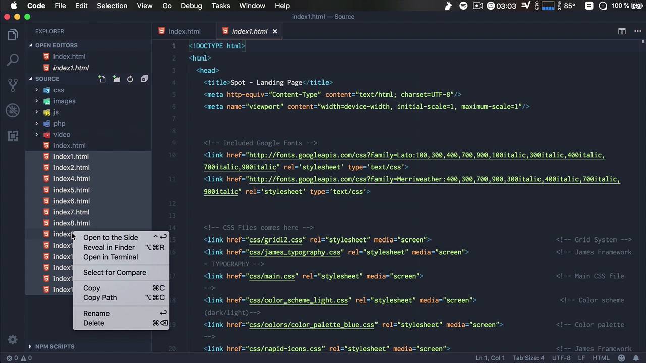 Hello and welcome to the second lesson of this course, where we'll start customizing our landing page. So let's begin by picking a layout. As I mentioned in the previous lesson, all the layouts that come with the theme by default have the exact same structure, but their hero area is different from layout to layout basically. So all we have to do is pick one that fits with our particular requirements. So let's quickly go through all of these. The first one, index1, is actually quite good. It offers us everything we need, the logo, the app platform availability, a nice headline, and a call to action, a part from extra imagery. Then we have our index2, which is pretty much the same thing but it has a dark background, a dark theme. And I don't think it's gonna work really well here, we're gonna stick with the white theme. Index3 has pretty much the same structure as Index1, but the image here is different. Index4 is the darker version of this. So let's go to index5. Index5 presents this app kind of in the background, I don't think that's a good fit. Let's go to seven. Seven also gives us an image in the background, but it has basically a different color scheme. And the rest of the layouts kind of keep repeating, but they have different color palettes and color themes applied to them. I think the most suitable for our needs will be index3 because it has all the information we need, it uses the white color theme, and I quite like this graphic,. We might end up changing it, but if we don't, this is also a very good graphic. So we'll go with index3. So we'll go back to our code editor, index3, I'm gonna rename this to index. And then I'm gonna select the rest of the files and I'm just gonna delete them since we don't need them anymore. So now I'm going back to, Chrome. CodeKit will automatically open index HTML. All right, let's pick the color theme or the color scheme. And the color schemes refers to either we use the white scheme or the black or the dark scheme. And that's very easily done by going right here in the index where it says color scheme, dark or light. Currently it uses the light theme and that's exactly what we want. But just for reference, if you want to change this to dark, you'll just save this and you would now have the dark scheme instead. But as I was saying, I quite like the light one so I'm gonna keep this one. Now, what about the accent color? And the accent color or the color palette as it is right here will basically give you the color of the buttons and some accented elements. Now, if we take a look back in the CSS under colors, you will see that we have a lot of color palettes, amber, blue-gray, blue-brown, and so on. So what you can do is you can cycle through all of these. So for example, if we want amber, we can do that, Save, Refresh, and we'll get the updated version. So do that until you can find one that you like personally. I think I will go for this blue-gray cuz I like the color of the button and it's a pretty simple color scheme. But feel free to experiment with these and pick one that you like. So what's next? Well, next up, I guess we'll start from the top and work our way to the bottom. So in the next lesson, we'll add our own logo and we'll also customize the navigation on both desktop and mobile. And we'll also customize the individual page sections, we'll see what we need, what we don't need, and so on. That's coming up in the next lesson.