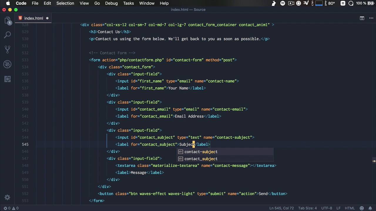 Hello and welcome to the sixth and final lesson of this course, where we'll customize the contact form. So there are two parts to customizing this one. We have the front end and we have the back end, which is represented in our case by PHP. As I was saying in the beginning, this is a fully-functional contact form. So when you're gonna upload your landing page to a proper server, which has a PHP server behind it, you'll be able to use the contact form to send messages. So for the front end, we'll go to our index H channel here. And we'll scroll all the way down, where it says contact. And, of course, we can customize the text here. This is not exactly distribution ready. So, for example, this text I would customize to contact us using contact form below, or using the form below. And we'll get back to you as soon as possible, for example. And then I would also change this text right here. So contact info, I would say something like, use the information below to get in touch, we'd love to hear from you. I would get rid of this paragraph completely. And, of course, change the information here with proper address information and proper contact information. But probably the most important part is, how do you customize the form here? Well, to customize the form, you have to pay close attention to its structure. So we see the input fields are all residing, or are each residing, in a div with a class of input field. So if, for example, we were to add another one for a subject, we would just copy this. And we would change the ID. So instead of contact_email, I would say contact_subject. The type is gonna be text, the type of the input. And the name is gonna be contact-subject. Now this has, of course changed here the label as well. And this is not the only thing that you need to do. This is a fully functional form, that means it has some PHP code in the back end that allows it to send messages. So if we open up contactform.php, if you haven't modified this form, then the only thing you have to change is this bit. The email address at which the PHP script will send the messages. So we would just enter your email address. And optionally, you can also change the subject here. And that will appear as the subject of your email. However, if your did change the contact form and with it you added another field, you would have to change this code as well to validate that field, if it's a required field, and to also add it to the body of your message. We're not gonna do this here, you would have to contact the author of the theme if you need assistance with that. And lastly, one thing that I did forget to do was, going here, at the bottom call to action, where it says Buy Project. And I wanna remove this Google Play button, because we're not offering this on Android. So I just remove that. And now everything is as it should be. Now with that said, this is not exactly complete right now. Yes, you still need to add your own text and your own images. In this course, I showed you what are considered to be the key points. Like how do you change your logo, and how do you add another image here, or maybe edit the one that was already there? How do you change this navigation, right? So stuff that would pose problems for people that don't have a lot of experience with coding and what to do with a theme like this once they buy it or they download it, for example, from Elements. And I hope I succeeded in that. So with that said, I would like to thank you very much for watching this short course. I'm Adi Purdila and until next time, take care.