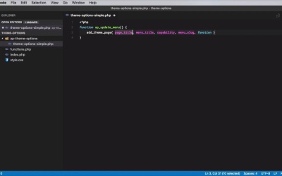 I will start by giving you a quick tour of my WordPress installation here. Now I'm gonna assume you know how to use WordPress and how to install a WordPress. This course is not about that. There are a bunch of resources on how to do those things, so if you don't know, go ahead and install your WordPress first and then come back to this lesson. But if you do, then many of you have a set up similar to mine here. I'm working locally. I'm using a Mac, using MAMP PRO to create, or to run Apache on my SQL servers, and I have a local work installation that always has the latest version, it is called WPIN latest. And inside my Themes folder, I have a folder called Theme Options and this is where I will be working. Now you can use an existing theme, if you have one. You just need to add a couple of things to your functions.php file, or if you want to start fresh, use a blank theme. You just need a style css, an index php, and a functions php. Those are three of the files that you need to create a WordPress theme. So I have those. I don't really have a need for an actual front end. Pretty much everything that I'm about to show you happens in the back end. So this set up works for me just fine. Now, inside my functions PHP, I have a. That loads theme-options-simple.php, which is in the ap-theme-options directory. And I'm using a separate directory just to have better control over custom files. I know that everything related to my theme-options page is in this folder. In here, I have a blank PHP page. So I'm going to start with PHP and the first we have to do is add an administration menu because we need a way to access our theme options page. If we take a look at my dashboard here and In WordPress. You can see that all of these menus here on the left have sub menus. And I want to add the link to my page under appearance, because it makes more sense, right. I could add it on the top level here. So I would have it Maybe after settings. But honestly, as I was saying, these are just top level links that branch down to other links and I think since I have a single link I'll put it under one of these Top menu and up here looks like a very good place to do that. The easiest way to create a sub menu under appearance is to use the add theme page function. Now if we take a look at the word press codex, add theme page accepts a page title A menu title, and a menu title would be displayed under appearance. Capability, basically what kind of users are allowed to access this page. Menu slug, which is a unique identifier. And a callback function. That's used to actually render that page. So coming back to my PHP, I'm gonna say function ap, for my name Adi Purdila, update_menu. And inside, I'm gonna say add_theme_page and I have this great plugin for Visual Studio code that automatically gives me WordPress snippets. It's very, very handy. So the page title will actually be Theme Options. I'm gonna keep it simple. The menu title is going to be the same, Theme Options. Okay capability will be manage options. So I'm basically saying that whoever has the ability to manage options, has access to this page. The menu_slug, we'll just name this ap-theme-options and then the callback function, I'm gonna name it exactly the same way, just with underscores instead of dashes, so ap_theme_options. Right, now by itself, this function will do nothing. Let me actually write some comments here. It's always a good idea to document your code. As I was saying, this function does absolutely nothing by itself. It needs to be hooked on to an existing WordPress function. In our case, that hook is called Admin Menu. So we're gonna use the admin menu hook to load our function, add_action we're gonna use admin_menu, and the function to add, is gonna be ap_update_menu. These are optional parameters. So, what happens now is that whenever the admin menu function is executed, our update menu function is always also executed. So now if we go back to the front end here, and we refresh, notice we only have three links in appearance, refresh and now we have a fourth, Theme Options. And if I click it, we'll get a warning saying that we don't have a valid call back, because the AP theme options function is not dDefined. So let's go ahead and do that. We'll say function ap theme options. And inside, we're gonna start with this. I'll run a check. If the current user doesn't have the ability to manage options, then we're gonna exit the function. This is just a security measure to prevent unauthorized access. So we're gonna say if not current user can manage options, then we're gonna say wpdi and we are gonna throw in our message. However, if the user does have the proper capabilities, we can start displaying the page. The first thing we'll start with is a class of wrap and of course, we need to close the PHP tag here in order for this to work, and we're gonna open it again here. This allows us to write HTML code inside PHP without using echos basically. And here, I'll just say H1 theme options, and then we'll do a form. Action is going to be options.php, this is very important and also the method to post. And let's just open some PHP tags here, we're gonna use these a bit later. But for now, if we do a quick refresh, you're gonna see that we have a blank page. Now to populate this page, we need to create sections, settings, and fields, and we'll do that in the next lesson.