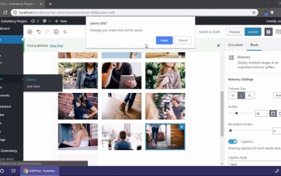 Hello, and welcome back. In this lesson I wanna take a look at the Block Gallery plugin. So if you're going to the Plugins page and clicking on Add New, you'll do a search for Block Gallery and it's the one that was created by Rich Tabor. Now, I've already activated that. So I'm gonna go into my Posts, and this time I'm gonna add a new post. And the Block Gallery plugin allows us to very easily create some photo galleries. So let's just create a new page here, and let's call it Photo Gallery. And then here I'm gonna create a new block. And I'm gonna scroll down, and you'll notice that the Block Gallery blocks are easy to find because they are in their own category. So if we click on that category, it expands out, and we can create either a Carousel, a Masonry layout, or a Stacked layout. So let's take a look at those. Let's go to the Carousel layout first. Now let's go to our Media Library, and let's add a few images and create a new gallery. Once we've created it, we can caption each image if we want to, or we can just click on Insert Gallery to insert the images, and there we go. And then over here on the right, you'll see we have some options for those images. We can change the size, first of all, if we change it to extra large it makes the images take up the full width there. And we can adjust the height and pixels, we can adjust the slider settings so we can auto play the slides. So if we turn that on, it will automatically cycle through those slides whenever the page loads. And you can change that transition speed to any delayed amount of time that you want up to ten seconds. You can make it draggable, meaning that you can flick back and forth using a mobile device. You can also turn on and off Arrow Navigation, which are these arrows up here. If we turn that off, those arrows disappear or gets smaller. I'm not sure why there are still arrows there when we turned that off, but that option is there. We also have Dot Navigation. If we turn that on, you'll see a few dots appear over the bottom of the screen. There's also some color settings as well. But let's take a look at that. Let's go ahead and publish this page. And then let's view it in a new tab, and here we go. So we can click on the arrows to navigate between those images. We can also navigate using the dots down here at the bottom. Pretty straight forward. So let's go back, let's close that, and let's create another section down below this image. And we're gonna go to our Block Gallery section and I'm gonna click on Masonry. So the Masonry Gallery gives you a layout very similar to what you might see on Pinterest or sites like that. So we can go to our Media Library here. And let's go and grab all of these images, and create a new gallery, and insert it. And we're not gonna see anything real fancy here because all of these images are the same size. But if these images were different sizes, we would see it filling in just like we do on Pinterest. So in fact, if we go in to some of these images, let's go to our Media Library. And I'm gonna edit these images. Let's edit this one. And I'm going to crop it. Let's just grab this section of the image so that it's more of a vertical image here. And we'll click on the Crop button and Save that. And then we'll go to, if you click on that, yeah okay, it's still cropped. Let's go to another image. Let's do the same thing for this one. Let's edit the image. And I'm just gonna do this for a couple just so we can get the idea of what's going on here. Let's crop that one and save it. So now, we have a couple of vertical images as well and we can see how those images stack up, once we see that. So let's go back to our Posts and it's gonna be this photo gallery post. And we didn't save it before we left. So that's fine, we're just gonna create it again from scratch. We're gonna go to the Block Gallery. We're gonna go to Masonry. And we're gonna go to our Media Library. And I'm gonna grab a couple of these images as well as the two newly edited images we added. Create a new galley, Insert galley, and there we go. Now, we get a better idea of how this is going to behave if you have different sized images. So now that we've seen that, let's go ahead and update the page. And then we can view the post. And go to our photo gallery and scroll down, and there we go. And we can also take a look at what this looks like at different browser sizes if we just drag this down, and kind of resize it. And we see the images shifting around like you'd to expect them to and it still looks really nice at any size. And once you to get down small enough, it just stacks them all on top of each other. So it looks pretty good. And again, you'll notice there are different options over here. You can change the gutter, so if you don't want as much space in between the images we can bring that down a little bit, tighten it up. We can round the corners of the images if we want by playing with this slider here. We can turn captions on and off, we can even update the captions style. There are also Link Settings so you can link to an attachment page for each of these images or media file. We have some Color Settings down below as well. So it has a lot of options with it and, yeah. So let's go to our third option here for our Block Gallery, and that's our Stacked option. And again we're just gonna choose all of our items here, create a new gallery and insert it. And here we just see images stacked on top of each other, nothing fancy there. Again, we can always go to the page itself and view it. And when the page loads, we scroll down. Here's our masonry bit and once we get past that, we see our stacked gallery which takes up the full width of the screen. So image galleries are really easy to create with this plugin. If you do use a lot of images, this definitely gives you some flexibility in working with those images. So thank you for watching. And I'll see you in the next lesson.