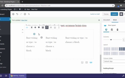 Hello, and welcome back. In this lesson I wanna talk about a plugin for WordPress called Kadence Blocks. And just like most of the plugins we're gonna talk about in this course, this particular plugin gives us more options when choosing from our blocks when we're using the Gutenberg Editor. So we're gonna go to our Plugins link. We're gonna hover over that and click on Add New. And on the Add New Plugin screen, I'm gonna do a search for kadence, with a k blocks, and hit Enter. And I'm sure that the longer Gutenberg is out, the more of these plugins there will be providing more and more functionality for Gutenberg. But we can see that Kadence Blocks plugins down here at the top left. I'm gonna go ahead and click Install now, and then when that's done we will activate it. And there we go, so it's taking us to the Setting page where we can go through and edit some of these settings. It gives us kind of an idea of the new blocks that we have available to us. But let's go back to our Posts. And I'm just gonna go back to our Hello world post here. And now, when we click on the plus icon, we'll see a few new icons here. So we see a few in the most used section. And if we go through some of the other sections we'll see that all of the Kadence Blocks are in blue instead of black. So they're easy to find, it's easy to tell which ones belong to that particular plugin. Other plugins will actually have a new category here that you can choose from. But our Kadence Blocks plugin, again, they're just in a different color. So let's take a look at some of these and see what the point is of using them. So the first thing I wanna look at is I wanna look at this row layout that we have available for us now. And in order to really appreciate what it does for us, let's take a look at the columns block that comes with WordPress. So I'm gonna click on Columns here, and it's gonna add a new columns block down here. And when our cursor is in it, we can come over here to the right and see our settings. And right now we're inside a paragraph. Now, if we click over here on the left edge of it, we can see the settings for the columns themselves, and we can change the number of columns that are available to us. But that's really the only option that we have. So we can come in here, and I'm just going to paste some text that I've got. Then we'll come in here to the block on the right and paste some more text. And it creates multiple paragraphs for us and when you click down here, you will see it's just creating a new paragraph down below. So that's nice functionality but let's take a look at what the row setup does for us. Now before we get to that let's view this post and a new window. Let's go ahead and make sure we update that first. And then let's view the post in a new window. And there we go. Now we can see the two columns here. Now let's take a look at what those two columns look like if we separate this window out. And let's bring the size down a little bit. Now, you'll see that the columns kind of break down and stack on top of each other. But the way these stack, it doesn't look quite right. You'll see the second column is kind of indented underneath the first one, which really isn't an ideal setup. We want it to look a little bit better whenever we collapse that. Well now that we've seen that, let's go ahead and close that. And let's take a look at the row setup that we have set up with Gutenberg. So I'm gonna add a new block here and I'm gonna choose row layout, the one with this blue icon here. And right away we can see that it has a lot more options for us. We can select from numerous layouts here that give us not only different numbers of columns but different sizes of columns. So we have one layout where we just have one row and one column. In the next one we have two columns of equal size. In our next one we have two columns, one of them is two-thirds of the width, one of them is one-third etc., etc. So we can click on one of these and it will automatically apply that layout and then we can start typing into each of those layouts to see what that looks like. Well, let's change that. I'm gonna click over here and click around the left edge somewhere until we can see the options over here on the right. And that's one issue that I have with Gutenberg so far, is you're never quite sure where to click in order to get the options that you need. Sometimes you can click on the left edge, sometimes you have to click near the top, but maybe they'll fix that in upcoming versions. But let's change our layout here to something simpler. Let's go down to two columns. Now let's just make the left column a little bit wider than the right column. So then we're gonna paste some text in both of these, just like we did the first time. But this time, I'm going to update, and now, we'll view that post in a new tab. And we'll scroll down and we'll see what it looks like at full size, and it looks fine. Now, if we click and grab that and resize it, These are the initial two columns. And remember that second column is kind of nested or indented a little bit under the first one. But in our second setup, if we would go back to full width, we see the two columns side by side, and when we bring that in we see that second column is not indented. So its responsive behavior makes a little more sense than the responsive behavior of the built-in WordPress columns. So again, you have a lot more options when you first create your columns and then it also breaks down a little bit better when we're talking about responsive layouts. So that's one option that comes with Kadence Blocks. We also have a few more. If we add a new one here we can see an Advanced button and again we can compare that with the regular button. So if we go to Common Blocks, and maybe it's not under Common. Let's go to Inline, nope. Layout Elements > Button. So this is the default button that comes with Gutenberg. And let's just say, Click me, and hit Enter. Or we might 