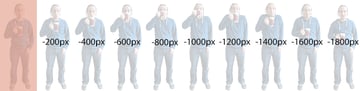 On each iteration of the loop the $i variable cycles from 1 through 9 and multiplied by the offset value (100). Finally we take the entire result and multiply by a factor of 2. The factor of 2 will help to move the background position in relation to where each image resides in the sprite. It also matches the offset value defined in the JavaScript which we’ll discuss in the next part of our journey.