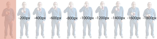 This Sass loop is the most important part. As we scroll, each correlating class will be toggled via JavaScript; these toggled class names correlate to the position of each image within the sprite.