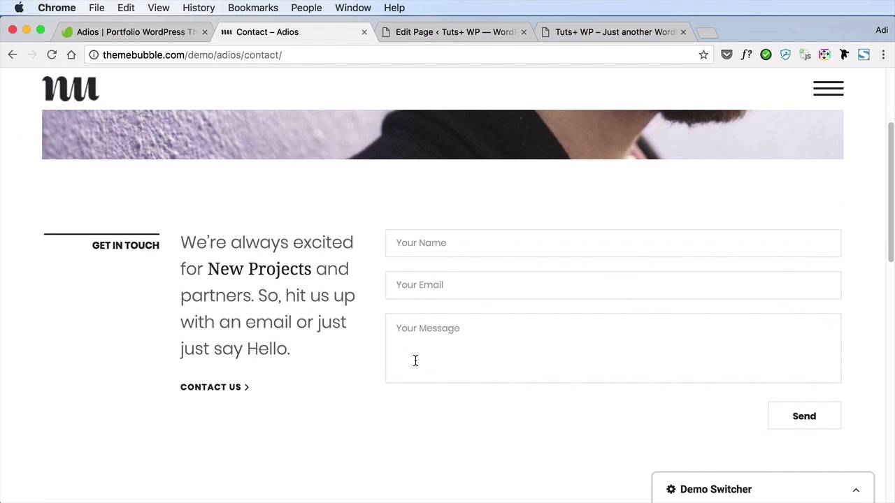 Our portfolio will have a pretty simple page structure. Apart from the homepage we'll have of course the portfolio page. We'll also have the blog page, and a contact page. Now of course fell free to customize these in any way you want, and in any way that you see fit for your own project. But for this particular demo that's quite enough. So how do we create a navigation? Well let's have a look at our homepage right after we imported demo content. If we do a refresh. You'll see that we already have a working page, right? The Homepage was set to this bit. We have pretty much everything you saw in the official demo home page. But what about the navigation? Well the navigation is actually here, you can't see the whole navigation because we have this admin top bar over it, but that's not a problem. We can still click it right here, and the navigation should actually look like this. We hit that button and we have all of the menu items right here. But in our case it doesn't show anything, that's because we haven't defined a menu. Now lets go ahead and do that, first we'll go to pages and we'll determine what pages we'll be using for our navigation. The home will be our home page, this is already set to the front page. This was already done when we imported the demo content so no change needed here. We need the portfolio. Now for the portfolio we actually have two options, 1, 3, or 4 columns or a Masonary. And we can actually go to the official demo and we can check out. Those options. So this is portfolio 1, this is portfolio 2, this is with 3 columns. And then portfolio 3 is with 4 columns, and portfolio 4 is with a masonry layout, and I quite like this layout, I think that's what I am gonna be using. So we'll go back here to Portfolio Masonry, we'll hit Edit, and I'm gonna change it's name to My Work. Again feel free to edit this in any way you see fit. I'm also going to edit the page name here in the address bar to my work. As you can see that uses the portfolio template. We have a couple of options here but we're not gonna tamper with these just yet. And then move onto the next page which is the blog. For the blog we have four or actually three options, blog list, blog masonry and blog list with sidebar. Since we used the masonry template for the portfolio I think we're gonna be using the same one for our blog. So we're gonna go back here to All Pages, and under Blog Masonry I'm gonna hit Edit. I'm just gonna rename this to Blog. And blog here as well, make sure the template is blog masonry, and I'm gonna hit Update. Finally we need a contact page. For contact we have a single template which looks something like this. We have a contact form and an address which is of course totally optional. So we're gonna go back to all pages and where it says Contact I'm actually gonna rename this page to get, oops, Get in Touch. Also gonna Edit the promo link here. Get in Touch, and the template is actually the default template. And this is what I was telling you about the page builder from WP Bakery, the former visual composer, right. This is how the content looks like inside this page, so this is like a simplified representation of what we actually see on our contact page right here. So this right here is the contact form which is generated by a plug in called contact form 7, all right. This is the text before it, and this is the title right, where it says Get In Touch. It's this title right here. And we can use this visual composer to edit or add elements, it's really really simple. So I'm gonna hit an Update, and then we'll go to Appearance, Menus, and WordPress created a main menu for us, we can save this one or create a new one, it doesn't really matter. And we can go ahead and add menu items from the left. This is a list of all available pages. So we're gonna start with this, Home, then we're gonna use Blog or yeah blog. Then My Work, which is the portfolio, and then contact which is Get in Touch. So I'm gonna hit add to menu. Now once we're here I can start moving these around, I can create sub pages if that's what I want or I can create parent level pages. So we have Home, My Work which is the portfolio, blog, and then contact. And you have options for each of these pages, you can change the navigational label, title attribute. You can hide the navigational label if that's what you want but I'm gonna keep them, oops, just misclicked there. I'm gonna keep them just like this. So I'm gonna hit Save Menu. And then if we go to Manage Locations we can see that the theme has a single menu location which is called Main Menu, and we're assigning it the menu that we created just now, great. So now we'll do a refresh. And if we open the navigation we're gonna see our brand new menu. This takes us to the home page. This takes us to the portfolio page, which he uses that masonry layout. This will take us to the blog page which again uses a masonry layout. And finally. This leads to the contact page. And currently the contact form is not being displayed, probably just a small glitch here. But we'll be creating our own contact form and we'll add it afterwards. Right, so our navigation works. All of our pages are set. Now we'll take each individual page and customize it to our liking. We'll begin in the next lesson with the homepage. See you there.