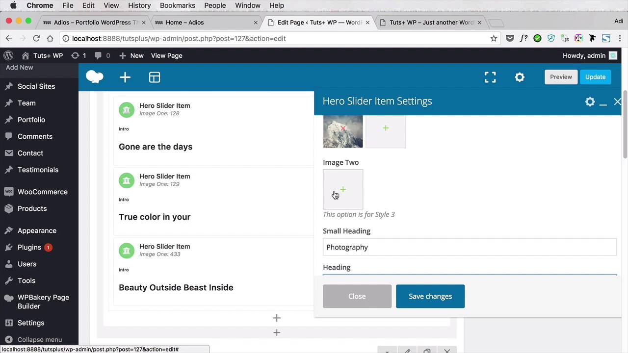 The homepage slider is the very first thing we’ll change, and because we’re building our portfolio we’ll use this area to display some of our most important projects. Let’s begin.