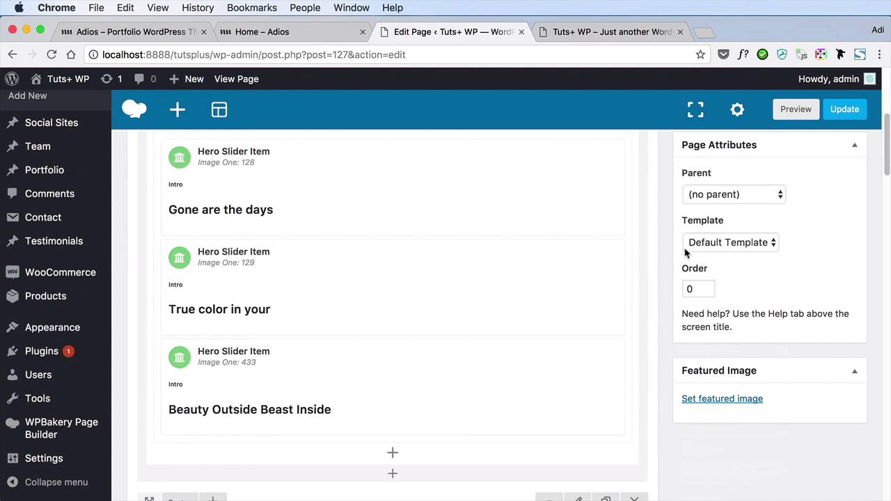 In this lesson we’ll be editing the homepage structure. Thankfully, the Adios theme uses Visual Composer, which is a plugin that allows us to build WordPress pages in a more visual way. Let me show you what I mean.