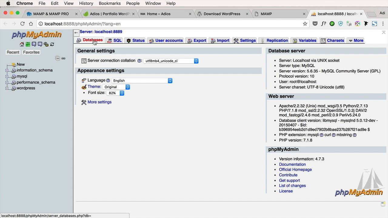 Before installing the Adios theme, you need a working installation of WordPress. Now, I recommend that you develop your website first, locally. And then once everything is done, deploy it to a live server. So in this lesson, you're going to learn how to install WordPress locally. For that, we need a piece of software that will install PHP, because WordPress is based on PHP. And we also need a MySQL database that WordPress needs to connect to. Now, we have such a software, and it's in fact free, available for both MacOS and Windows, and it's called MAMP. There is also a MAMP Pro version, which offers some additional features. But for just starting out, setting up a really basic WordPress environment locally, the free version is everything you need. So go ahead and download it for your operating system. And once the app is downloaded, we're gonna open it, and it currently looks something like this. Now this is currently not started, once you install it, you might need to open the settings and configure. So all the settings that you see here, for example, when starting MAMP, you can choose to start service automatically. You can configure the various ports MAMP uses. I left mine at default because I didn't see a problem with that. And then you can choose the version of PHP that it can use, again, I left mine at default. I chose the web server as Apache, and I changed my document root to Local WP. Of course, this is entirely optional, the default installation for you might look something like your username, MAMP, and then HTDocs. That's where you have to copy all of the WordPress files in order for this to work. So I changed mine to Local WordPress, and I'm gonna keep it that way. Now once you configure everything, you just hit Start Servers. And this will start the Apache and MySQL Server, and you're all set now. The next step is to install WordPress, so for that, we need to go to wordpress.org, not .com, be careful, .org. Then we hit download WordPress, and the latest version at the time of this recording is WordPress 4.9.1, so we're gonna download that. I'm gonna save mine in the sub course folder, you can save yours whereever you want. And that downloaded WordPress, now we just need to install. Now, to install WordPress, there are two steps you need to follow. One, you need to create a database that WordPress will connect to and will store all of the website information into. And two, you need to copy the WordPress files that we just downloaded into a specific folder on your hard drive, in order for us to be able to work with it locally. So the first thing we'll do is create the database, that's very simple. From the MAMP application, you hit Open WebStart page, then go to Tools, PHP MyAdmin. And then on the left side here, you're going to see the available databases. And I already have a database called WordPress, because I have another installation of WordPress on my computer. But in your case, you would need to create a new database. So go to databases tab, and choose a database name. In my case, I'm gonna simply say tutsplus, but you can name this whatever you want, and then you would hit Create. So right now we have a brand new database called tutsplus. Now we need to copy the WordPress installation files into our working folder. Going back to my folder here, I'm gonna double-click this and extract the archive. And then copy everything inside the WordPress directory. And then I'm gonna navigate to my local WP folder. It's the same folder that I showed you right here in the preferences. And actually I can just hit this button, And it takes me there directly. Now I have another WordPress installation, just like I said, it's called wp491. But we're gonna create a new folder we're gonna call tutsplus. And inside tutsplus, I'm simply going to copy and paste those files. In order to access those files, I'm simply going to open localhost:8888/tutsplus, which is the new folder that I just created. So this will prompt the WordPress installation screen. Choose your language, hit Continue. Then WordPress tells us that there are a couple of details that we need to know before installation, so we'll hit Let's go. The database name that we created is called tutsplus, if you remember. Let me show you that again, right, so this right here is the database that we'll be connecting to. The username will be root, password will also be root. Database host, just leave it at localhost. And you have the option to add a table prefix. In my case, I'm gonna say wp_tutsplus_ this is optional, you can just leave the wp_ that's there by default. Hit Submit, and then run the installation, It's gonna ask us for a site title, I'm gonna say Tuts+ WordPress. Username, I'm gonna say admin or adi or whatever you wanna put in there. Password, because we're working locally, we don't need a really complicated password, so I'm just gonna say 1234. If you're worried about security, maybe you're sharing your computer or other people have access to your computer, then go ahead and use a different password. I'm gonna hit this check mark and then I'm gonna hit, Discourage search engines from indexing this site. Because there is no point it doing that, since we're working locally. Then I'm gonna hit Install WordPress, and that's it. WordPress has been installed, now we just have to log in. I entered my credentials there, and we're in. This is the WordPress back end, this is where we're gonna control the entire WordPress installation. And if we hit this link right there that says Visit Site, yeah, this is our actual front end, this is what the visitors will see. Now that our WordPress environment is all set up, it's time to install the Adios theme, and we're gonna be doing that in the next lesson, see you there.