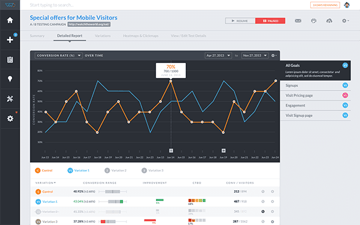 Watch traffic come through and use the automatically generated charts and heatmaps to see exactly which version of your site generates the best results.