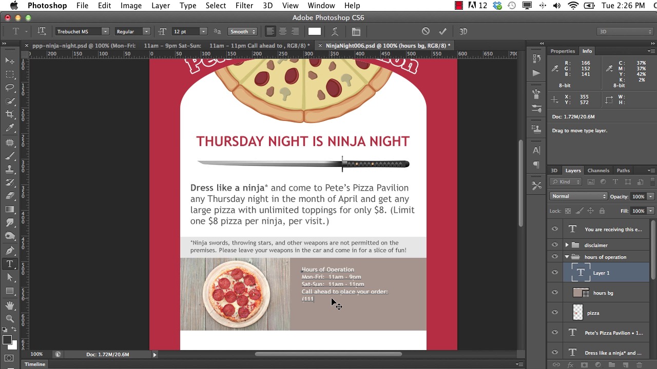 In this video, we’ll finish up the design of our email by adding another pizza graphic and announcing our hours of operation.