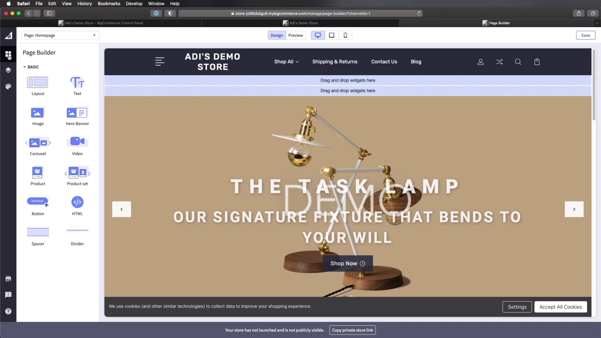 Welcome back to the course. In this lesson, you'll learn how to add a new storefront theme, and also how to customize its essential aspects, so let's begin. We are back here in the admin interface. And this is what our frontend or our storefront looks like. We are using a default theme from the BigCommerce category. But if we wanna change that, we can go back to the admin interface and under Storefront, we can see that we are currently using Cornerstone Light. And if we want to get a new one, we would click Browse Themes. And that will take us to the theme store, where we can filter themes by free, paid. And also by a couple of parameters that we can find on this left sidebar, like do we want a theme with a grid layout or large images? Or what about the industry? Maybe I want a theme for food and beverage. So let's actually select Fashion & Jewelry because that's the last product that I added. And I'm gonna choose Free, and we can sort by featured, price, ascending or descending and if we were browsing paid themes. So you can look for a theme that you like. Here is the one that we're currently using. And I think I'm gonna select maybe this first one, Lifestyle Default. Let's click that. Here we can find more information about it. We can also see a preview of the theme on large screens and on mobile. We can see all of its features here. We can see what it's optimized for. And if we like this, we can go ahead and get it. We can preview with our store or we can see a demo. So View Demo will just open up the theme in a new window and we can see it. So that looks pretty good, but let's go ahead and click Get This Theme. And this is gonna ask us to log in to our store, so let's do that. And once we're logged in, it's gonna open that theme in our backend. You can see that we are now on the theme marketplace. So we can go ahead and add our theme. Now if we want, we can apply the theme right away or later. Let's do that now, and let's confirm. So now you'll see that under My Themes, we can see the current one is the one we just added. And if we open the frontend, this is the old theme. And if we do a refresh, this is the new theme. And it's really that easy to install new themes on BigCommerce. Now, if we want to customize this theme, which we'll most likely be doing every single time, we can click this Customize button right here. And that's gonna open our frontend, our storefront into this live preview. And we can use this interface to add new content using the page builder. And we can also access the theme styles. And here, we can change the colors for a lot of the elements. We can change the various properties for pages. For example, if we wanna hide breadcrumbs, we would check this. And that's gonna refresh the preview, so we can see the changes live. So that's pretty cool. Now let's quickly do a demo of this. Let's see, maybe I wanna add, I don't know, another piece of text here. How would I do that? Well, I would select it from here, click and drag. And then I would just enter the new text. And with it selected, I can change the font family, the font weight, size, the text color, the alignment, margin, padding. So I have access to controls that allow me to customize the look of this widget as it's called here in the page builder. Maybe I wanna add an image, so click and drag. Maybe I'm gonna drag it under this new text. And now I have an image in. And again, with the image selected, I can choose to upload my own image. And then choose the image dimensions, how the fit, the opacity, the alignment, margin, padding. And some additional options that we haven't seen before, like the border. Maybe we wanna add a link to that image. And also the Alt text for that image. All of this is configurable from this visual interface. So this is currently the homepage, as you can see here, but you can select other pages. So you will go ahead and save this one. And if you have other pages created on your store, then you would select it from here, Shipping & Returns, for example. And you would customize the contents of this page in exactly the same way. Now, if you want to customize the look and feel of the entire website, well, you can go to Theme Styles. So here, you can change the theme primary color, how the background looks like, how the lines look like. And, of course, this depends from theme to theme, but the idea is you have access to all the colors that are being used and it's really easy to choose a new one. You can also select the typefaces that are being used. So for headings, we are currently using Rubik, but you can change this to something else. And there you go, the live preview updated automatically. You can change the color of the headings and a lot of other very cool options for customizing here. For example, hide breadcrumbs will get rid of these breadcrumbs on the pages, and that's gone. You can hide the page heading and a lot of other customizations. You can really tune this in to match the exact style that you want. And once you're done, you will just hit Save, and now any change that you made will be visible in the storefront. So here on the homepage, we added this new text and also this image. All right, and that's a brief look at how to add a new storefront theme and also how to customize it. Now, after you've spent all this time adding the products and tweaking the categories, the brands, the storefront appearance, you're pretty much ready to go live with your online store. And as I mentioned in the previous lesson, one of the very nice parts of headless eCommerce is that you can have multiple storefronts connected to a single backend, to a single database. So you can sell your products on multiple channels. Let's briefly talk about that in the next lesson, see you there.