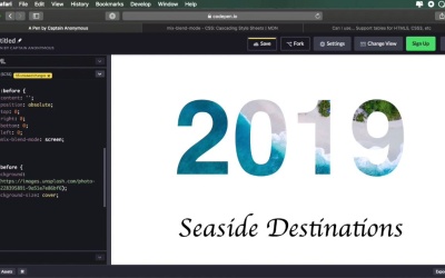 The second technique we'll cover for creating a text mask uses blend modes. More specifically, the multiply and screen modes that allow us to use white or black text over an image to choose which parts of that image we wanna display through the text. So let's begin. So I have an example setup here I have an hgroup with an h1 and h2. And then I went ahead and applied some general styling, just some font-family, alignment options, and font size information for the h1 and the h2. Now, let's do this. We'll say, h1 and h2 we'll cover the common properties, first. So we set up color to black, and a background to white, then we'll do this. Mix-blend-mode: multiply. Now, this by itself don't do anything because there is no background to the parent element. And to make sure that we don't interfere with any other elements in our page, we're gonna use some pseudo-elements on these actual headings. So we're going to do this. Before, I just reset the content, set position: absolute. Let's set a position: relative here. And then we'll make top, right, bottom, and left 0. And then we'll set mix-blend-mode: oops, to screen. So then, let's target the h1::before and I'm gonna set a background to it and let's also do background-size: cover; and there you go. We have this image that I got from Unsplash it looks something like this. And by making it background-size: cover; all right, we're displaying as much from the image as possible. So now we get this nice text masking for this background. You can actually see the background behind when I do my selection. That's pretty cool. Now, it also works with gradiance. So, on this h2, let's go ahead and add a gradient. So h2::before. We're gonna say background. Let's do a linear-gradient. Let's do (to right,) and let's put a couple of color values in here. So we have a nice multicolor gradient, and all of these colors are taken directly from this image. I just sampled them from there. So that's all there is to it. The key is setting these blend modes correctly. So as you can see on the h1 and the h2, so on the actual text elements, I set the blend mode to multiply. Now, the multiply blend mode will keep dark colors dark and light colors will let through what's behind. Now on the pseudo-element I set the blend mode to screen so the screen is the reverse of multiply. Dark colors allow you to see what's behind and the light colors block what's behind. So by combining these two, we're able to achieve this very nice effect. Now, in terms of browser support, things get a little bit sketchy here. These are not supported in a lot of browsers as you can see, IE and Edge, don't support mix-blend-mode. And Firefox and Chrome, Only the latest version supported Safari. Not so much. Opera supports it. And yeah, that's pretty much it. So not a lot of support, but it's still there, the modern browsers most of them do support it. So, if you wanna play around with blend modes, then you really have to be careful about these things. If it's something experimental, then you can get away with it, no problem. But if it's something that you wanna rely on 100%, go for the previous approach with the background core property. Now, in this lesson, we created this effect where we're basically displaying a background inside a text. But what if you want to create different type of cutouts in the background, excuse me, in the shape of that text. Well, in the next lesson, we'll again, use blend modes to create slightly, something a little bit different. So I'll see you in the next lesson.