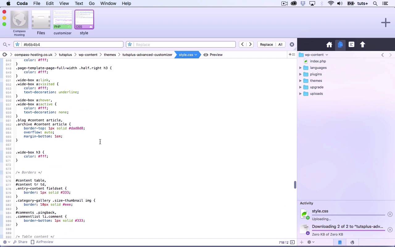 Hello, and welcome back to this Tuts-plus course on the WordPress Customizer. In this part of the course, we'll continue adding CSS to our style sheet, to enable us to use the color scheme that you can see here. So at the moment, all I've got is the default or the brown color scheme, whether you like it or not that's what it is. Now I've checked and there appear to be some problems with it. So here you can see links and the links in the widget areas need to change and also the headings in the widget area. So let's go back to to our style sheet. So I want the links in my side bar to be white. So let's see if we've got that anywhere. I think the issue might be because of this body brown. We've got specificity fighting with us here, so let's have a look see if we can find widget areas. And see if that helps. That's looking better. So all I need to do is add body in there so we got an extra element, I know its not the tidiest form of CSS but its targeting the same element so it seems to be working okay. So let's go back to our first color, so now I'm gonna to do the first color for brown, for blue, sorry, and I'm gonna use a color pic as find a color of blue. So here I've got a color picker, I've picked a blue that I quite like and I'm gonna copy that, put hash on it. And then what I need to do is copy this part. And change all the browns to blue. And also change the color. And then I'll do the same with this and note that I'm only copying the body brown bits and replacing brown with blue. And don't copy that because that's the default. So save that and then test it on my site. So now I'm on my site which I've refreshed and I select the blue color scheme, and that is now working. So I have blue headings, and I have a blue background to my widget area, and I also let's have a look, see if we can find some links. We can't make any links, here we are, here's a link. So, you can see that that's now working. So now let's do this for the other elements. So now let's do it for the other aspects of color scheme that are still in blue. So color two is my footer background. So, that's this here which is currently grey and I'm gonna make it another shade of blue, I think. So, let's find a sort of blue-grey. So, again we copy that. And we'll paste in the color, and then I'm gonna do the same for the links on HAVA. Now let's find a slightly different shade of blue. So let's do, no, that's not gonna be distinct enough, I'm thinking accessibility here. I'm gonna actually make it the opposite, I'm gonna make it orange, just to be difficult And obviously you can do what you want. I'm not necessarily producing the most beautiful color scheme here but what I am doing is showing you this technique and how you can use it with the customizer. So now we have all of this to copy. So we save our style sheet and then we'll test it on the site and here we are and you can see the orange there on the link and you can also see this blue on here. Now I don't like this gray hair, this sort of brownie color, so let's go and change that. So we've got widget area a link I visited, I'm just gonna make them white in all cases for simplicity. Now you could add these to the color scheme but that's gonna take us longer, so I'm not gonna worry about it. This white I know will stand out against all the colors that I'm using. Now, before I save that, I'm gonna go back and do the greens and the monochromes, and I'll run through those quickly and then show them to you. So you can see after all the green ones, and I'm now doing the monochrome one. So I'm using .mono, which was the class that I used in the customizer. So that's the first color for the monochrome now I'll do the second. This is the footer background so actually I'm gonna make that darker. So that's all of the colors in my color scheme added. Now let's check it on the site. So now here I am back in the customizer, and you can see if I select greens, and if I select monochrome, we get the right color scheme. Now let's have a look at the about page again and see that link. Yeah, the link's got an underline, it's not quite as obvious as I'd like it so if I wanted to make this more accessible and perfect it, I would do a bit of tweaking with the links for the monochrome scheme, but here you can see the greens and I've got a nice green link there which changes color only slightly on hover so again, this we might want to make a bit paler and in fact let's do that. So that is the color of links on hover. So back in the color picker his own green, I'm gonna copy that and then go back to that website, paste that in. So that's the shade of green we've got, let's find something a bit lighter. Let's use that sort of minty green. And back on our site, when I hover, that's a bit more obvious so let's look at this link further down in the text. And it's still not as obvious as I'd like, but we're getting there. And so that's that's how you create a color scheme and add it to your style sheet. Now I've done that without adding any styling to the head section of the page, which is a much better way to code CSS. And the way I did that was by using the body class filter to add a class to the body element, and then use that target that in my style sheet. So that's how you add a color scheme to the customizer and get it working. So in this course, we've added a site header, we've added layout options, and we've also added a color scheme, all by modifying our theme to include use of the customizer. In the next part of the course, I'm gonna wrap up by summing up what we've learned and giving you a recap on everything that we've covered. See you next time, and thanks for watching.