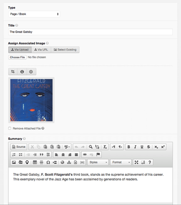 Now that you have created all of your extended attributes, you can add a new book from the site manager, and fill out all of the form fields you just created.