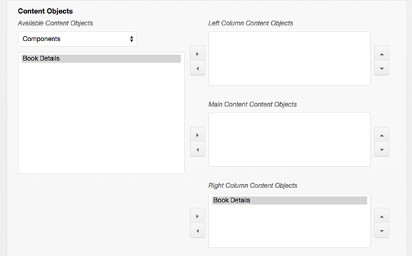 - Under Content Objects, select Components, locate the Book Details component and add it to the Right Column display region.