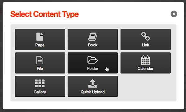 - When the Select Content Type modal appears, you should now see the Book page type, along with the respective icon.