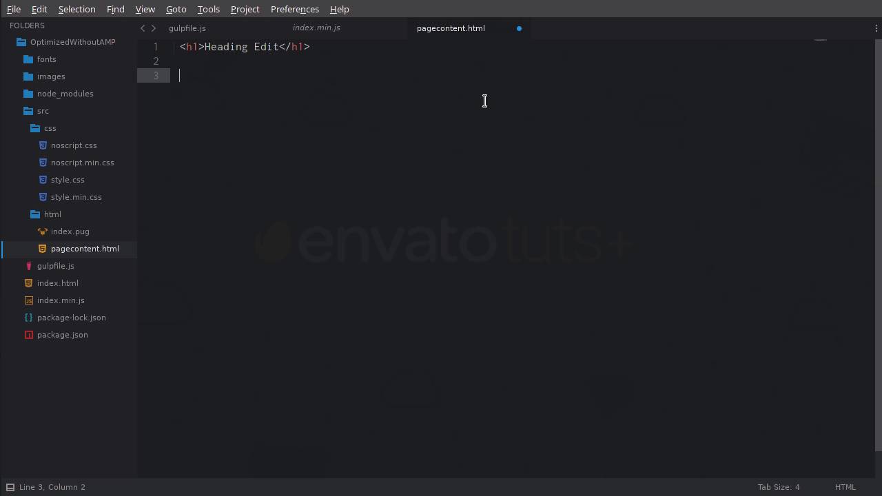 Hey, welcome back to optimize your website without AMP. So far, we have almost everything to set up in our build process. We've got our HTML, and our CSS, all being handled and optimized, and we've got a nice live reload server going. The last thing that we need to do is set up our JavaScript. In this case, we don't need to create a folder inside our source folder because we're not gonna be writing any custom JavaScript for this project. Instead, what we're gonna be doing is working with some of the JavaScript that we have already installed up here in our node_modules folder. So what we're gonna do is pull the JavaScript that we need out of this node_modules folder, combine it, minify it and then output it as an optimized file into a root directory here. So for that, we're just gonna need to add one more gulp task. We'll do that with this code. So once again here, we're setting up our gulp task and naming it JS for JavaScript. And in this case, we're gonna be using a few different source files. So far, we've just been using one source file for each of our tasks, but when we need multiple source files, we can just put them all in an array. And that's what these square brackets here signify. They signify an array. We're gonna be using three different bits of JavaScript here. We're gonna be using lazy sizes to handle our lazy loading. We're gonna be using baguettebox to help our gallery in lightbox and we're gonna be using siema to create the carousel of tweets at the bottom of the page. So this bit of code pulls in all of those three files from their respective locations inside our node_modules folder. And then this line here concatenates or combines all of those files into a single file that's gonna be named index.min.js. And then we're running the plugin uglify on that file to remove any white space there and compress the file down as small as possible. We'll say the destination for our new file to be our root folder, and we're telling browser sync to refresh our page whenever this task is executed. So we'll Save that, and now let's give it a try. So back in our root folder, and now we can just run gulp.js That succeeded and there's our new index.min.js file. If we have a look inside it, you can see that all we have is one big long line of code. That's because it's taken all that JavaScript and removed all the white space, so we've just got this one really well optimized file that we're gonna be working with. And if we check out the file size, you can see that we have it down to only 25 kilobytes. So we're gonna get that functionality in with a small file size, and only one browser request. And there's one more thing that we're gonna do and that is in our page content, we're gonna get that index.min.js file loading in. All of the code of our page is going to go above the location that we load in this file. Because the functionality that we use in JavaScript 4 here, is not gonna need to be used right away. Because we wanna allow all of our HTML and CSS to load first. Then, we'll load in our JavaScript. So down at the bottom, we're gonna add a script tag, and then we're gonna add the source, which is, index.min.js. Now, also we're going to include async here. What asynchronous means is basically multiple things happening at the same time. So when you use async inside the script tag, you're letting the browser know that it can carry on doing other things, it doesn't have to stop and wait until this JavaScript is fully loaded. It can keep on doing whatever it has to do. And this is one of the really good optimization techniques that comes from AMP. In AMP, every single JavaScript file that they load externally uses async, so you wanna do the same thing when you're doing your own optimization. Now the thing to be aware of here is that because you're loading this JavaScript asynchronously, you have to call the functions that are inside it at the right time. Because otherwise you might be trying to run JavaScript before the page is actually ready for you to be running it. So we're just gonna set things up so that when we start to wanna use that JavaScript it's gonna be set off at the right time. So we're gonna add in some script tags and then in here, we're gonna add window.onload. We're gonna set that to equal a function, And then we just close out that line. And then all of the JavaScript that we're gonna run is gonna be done inside this function. So window onload is an event that fires after the page is fully loaded. So we gonna wait for this onload event, and only then are we gonna run our JavaScript. And another reason that you use this onload function, one is to make sure that you're not running JavaScript before it's ready, but two, to make sure that you're not overly prioritizing your JavaScript. You don't want to make your visitor sit and wait for an extra few seconds for the page to load because your JavaScript is running a little bit too early in the picture. Right, so that's our whole build system set up and all of the essentials for our project are in place. Now we're ready to start adding in the site specific content. So in the next lesson, we're gonna get the basics of our HTML in place. We're not gonna be coding every line from scratch, we're just gonna keep the focus on the optimization-specific elements of the content that we're adding in. For that reason, we're also just going to pretty much copy and paste in a whole chunk of CSS, so that the general styling for the page is taken care of. So you can just concentrate on the optimization specific elements of the CSS code. And then when we have some content on the page, we have some images and some iframes, we're gonna start implementing error optimization methods. And the first thing we're gonna add is our lazy loading. We talked earlier about how if somebody is trying to read the content at the top of your page, you don't need to make them wait for the content at the bottom of your page to load first. So lazy loading prioritiz