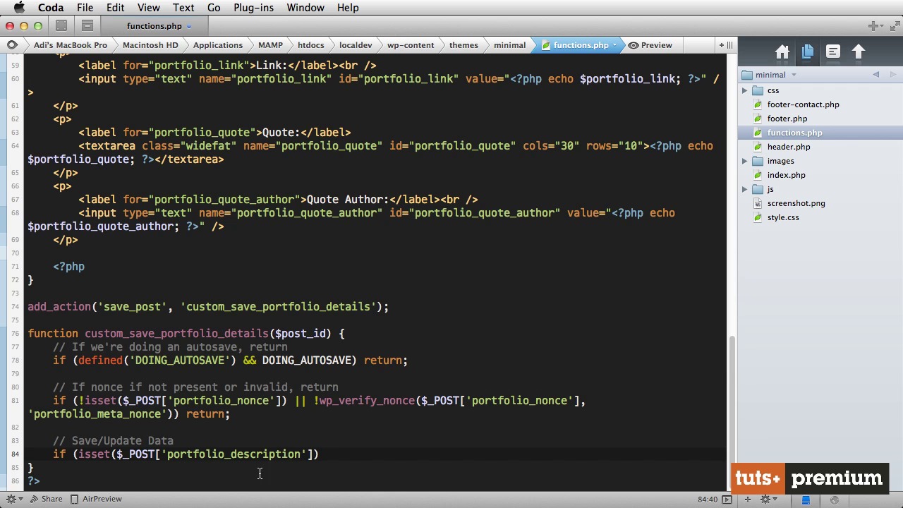 In the previous lesson we added some custom meta boxes in the backend. Let’s write a function that will handle all the saving and updating.