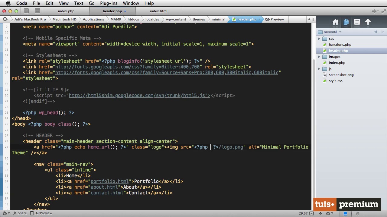The header.php file will be loaded in all pages, and it should contain all the common elements for the pages. Let’s build it.
