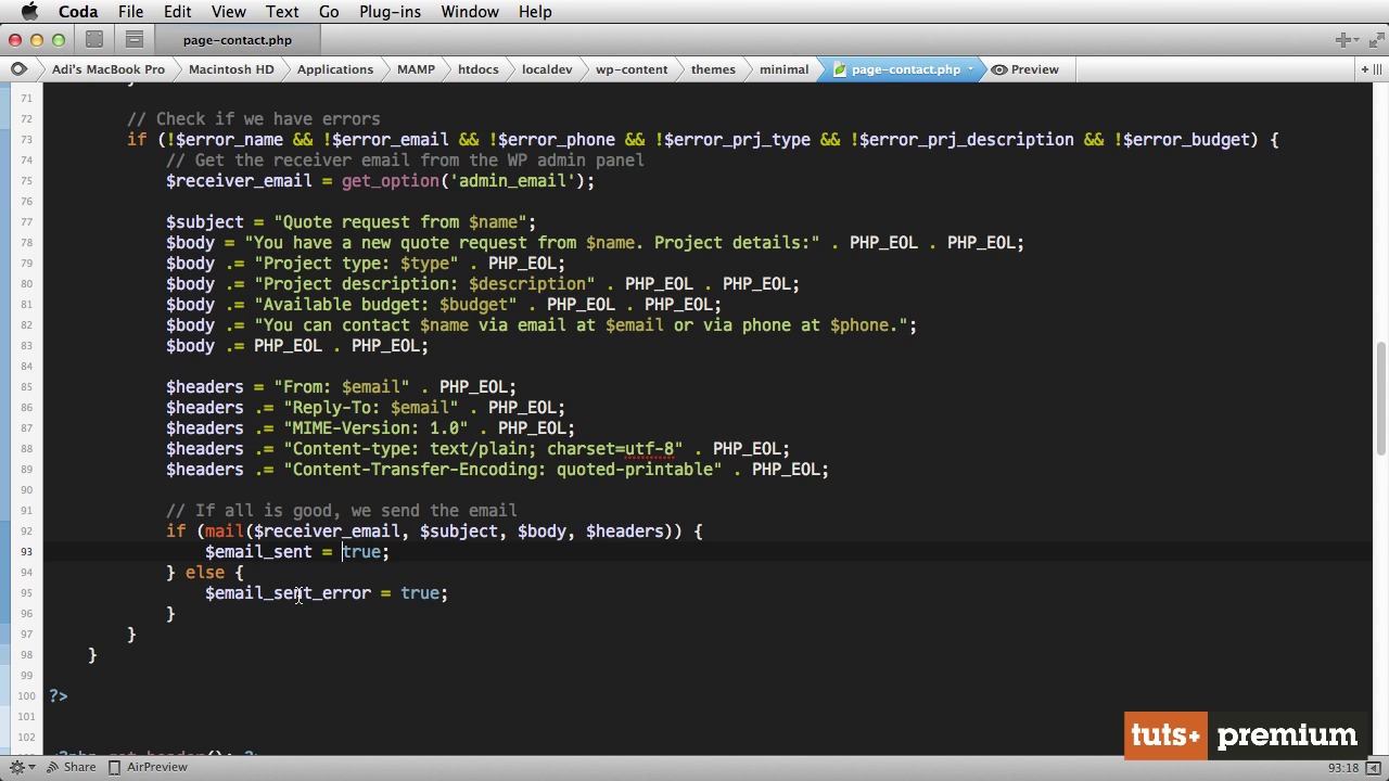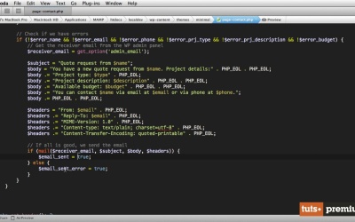 Normally in this lesson we’d have to write the PHP for the contact page. We’ll do things a bit differently now, because that code is really tedious to write line by line. Instead, I’ve already written the code for that page and I’ll walk you through it, line by line, explaining what I did.