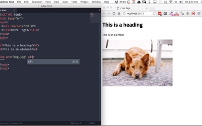 Hey, welcome back to Start Here: Learn HTML Basics. Let's quickly go over what we've learned so far. We've learned that HTML is a type of markup that you use to give instructions to a web browser. We've learned that pages are made up of HTML elements and the H.T.M.L. elements are created by putting together HTML tags. We also learned that you can have sets of opening and closing tags and that you can have standalone void tags. And the last lesson, you also saw how on top of just the tags themselves we added in some extra information And what we add in there is called an attribute. Now attributes add extra functionality to HTML elements. So let's look at the attribute that we've added to our image element here. Now attributes always follow the same structure. You always have a space after the actual tag name then you have the attribute name and equals sign, a set of talking marks and then you have the value. So you have space attribute equals value in talking marks and you can have multiple attributes per tag and you just have to have a space In between each attribute. Now let's have another attribute into image tag and what you're going to want to do is have a reference handy to all the different HTML elements you have at your disposal. Now I personally like The Mozilla developer network reference. But you can also use the W3.org reference and I'll give you links to both of those. Now down the left side here we have a full list of all HTML elements that are available for use in the current version of HTML. So if we go through alphabetically we can find our Image element. Now we can go into the extra information for that element and if we scroll down, here we can find a list of all the attributes that can Can be used with the image element. Every element is different. Every element has different attributes that you can use along with it. And a reference like this you find out what those attributes are. And we already used the source attribute. And this gives us a description of what that attribute does. In this case that just provides the address of the image file that you want to load into image element. Now let's choose another attribute to use We're going to also add the alt attribute. Now, alt is short for alternative. And you can use this attribute to give some type of full back in case for whatever reason. A visitor is not able to see the image. We can put some text as the value of this old attribute. To describe the image so that if a person can't see the image they still know roughly what was supposed to be there. So we go back into our HTML, we have our space after our last attribute and now we're going to type in our new attribute. We're gonna say equals and we're going to add some token marks. And then in between the two, we put a new value. And we'll add some descriptive text of the image. So now let's see what happens if this image doesn't load, we just deliberately misspelled the name of the file. So now there's is our Alt Text acting as a fullback. Now let's try another example of working with an attribute on an H.T.M.L. tag. So just undo the change we made. Now we're going to add a link. To one of our words that we have in our paragraph here. So let's add in a new element and the element that we're going to use to create a link is the eye element. So check out our reference is that a element And this tells us that this creates an H.T.M.L. anchor or a link and down here we have our attributes and we can see that you need to use an H. ref attribute to specify the U.R.L. that we want this anchor this link to go to so let's add that into our code So we'll add our opening tag and we'll add our closing tag. We'll add some text inside it. And we're gonna make this link to Google, so we'll just put in the word Google. Just make a little space here. Now we need to add our href attribute, so that we know where the link needs to connect to. So we make a space we put in our href attribute we'll set equals and put in our talking marks and then in between the talking marks, we're gonna put the URL of Google. So we'll put http. www.google.com. So now here is a link and if we click that that takes us through to Google. So now we're gradually building up our process. You know that create the mock up required for a web browser you need to piece together. H.T.M.L. elements and that you do that with H.T.M.L. tags that also use H.T.M.L. attributes. Now those concepts are actually the complete foundation for all of the Web design that you will do for the rest of your career. No matter how complex and in depth, everything gets, it's all going to be comprised of those exact same steps. So all you need to do is know where to look to find the correct reference material to learn how to follow those steps as you piece together your websites. And you will have seen In this reference that there are quite a few different H.T.M.L. elements. Most of this, you really want to use very often at all. Most of this are actually fairly edge case this only a handful that you gonna use in all of your projects. So in the next lesson we're going to cover what those common elements are and the role that they play in websites. So see in the next lesson.