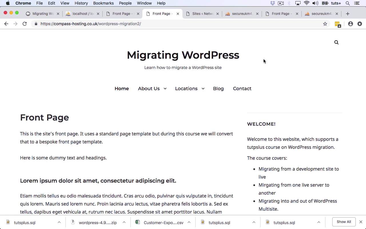 Hello, and welcome back to this Tuts+ course on migrating WordPress. In this final part of the course, I'm going to sum up what you've learned as we've gone through the course. And what we've covered is how to migrate a WordPress site between various locations. So we started with a local WordPress site that you might have used to develop your new site before you wanted it to go live and I showed you how to migrate it to a live site on a remote server. So we started off by using phpMyAdmin provided by MAMP to export the database tables. We then went into Coda and edited those. So we found the domain name for the local site and we replaced it with the domain name for the remote site. We save that as a new file and then we copy the files from the wp-content directory over from the local site to remote site. Having done that, we imported the database to the new remote site and that gave us a carbon copy of the old site. We then did the same thing between two different remote sites. So we used the same techniques to migrate from this new remote site to another one that you can see looks exactly identical but it's on a different place online. Now in my case, I've put it on the same server in a different place but you might be migrating between hosts and you'd use the exact same techniques. But then moved on to looking at multisite and how you can migrate a site in and out of multisite. So we started by migrating a single site into a WordPress multisite installation. So we created an empty site in our WordPress network and then we went back to our original site. We exported all of the tables except the wp_users and the wp_usermeta tables because those are network wide in WordPress. And then once again, we edited the SQL file that was created and we replaced the instances of wp_ with wp_2_ because that's the database prefix used for that site in the network. Once we've done that, we saved our file. We went back into phpMyAdmin on the network and we imported those database tables. Having done that, we used the plug-in to export our users from the original site and import them into the site in the WordPress multisite network. And then finally, we completed this process in reverse, migrating a site out of WordPress multisite network and creating a new stand-alone site with it. So now you know how to migrate WordPress between a variety of locations. I hope you found this course useful. Thanks for watching.