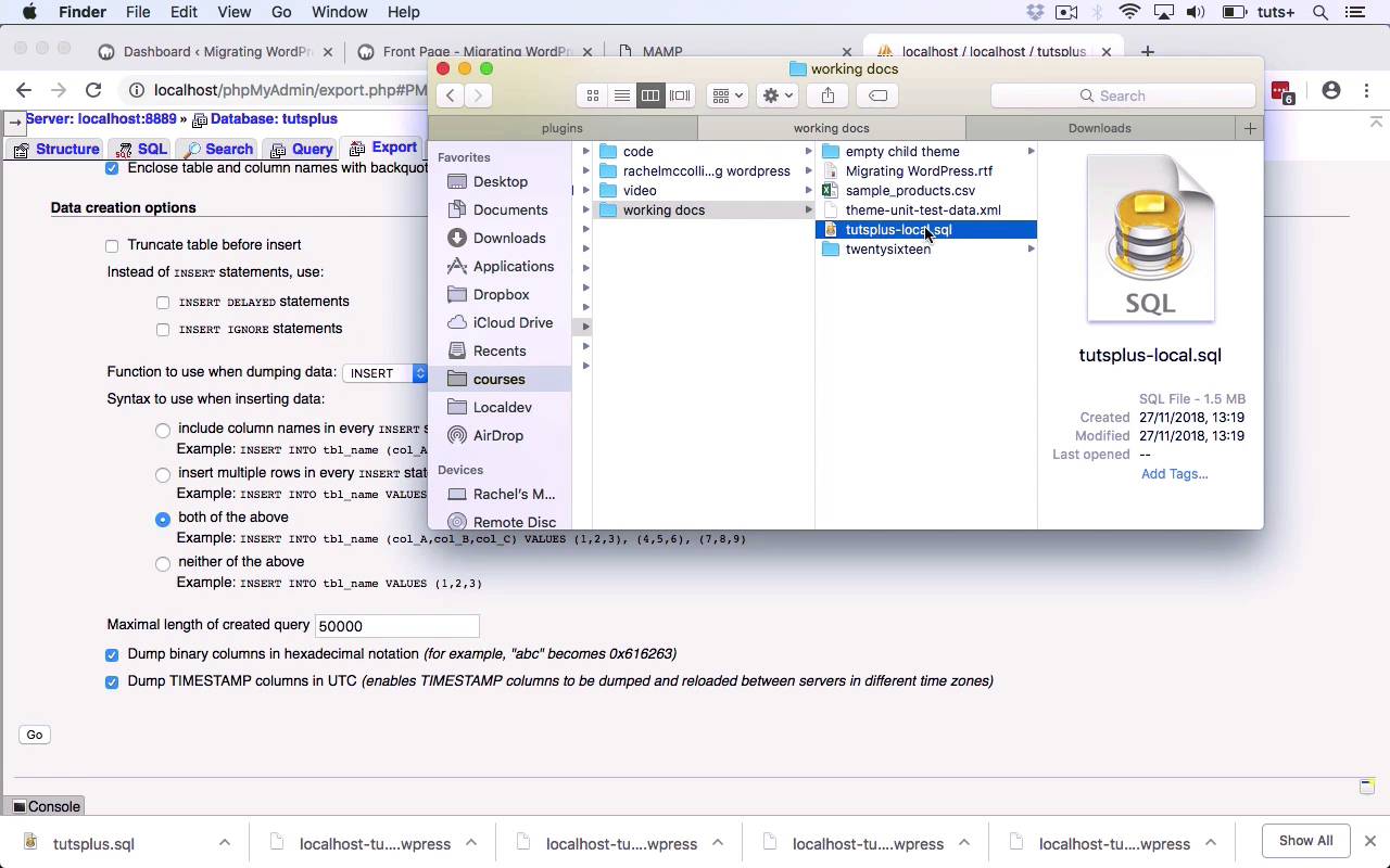 In this lesson, I'll show you how to export the database from your development site and edit it for use with your live site.