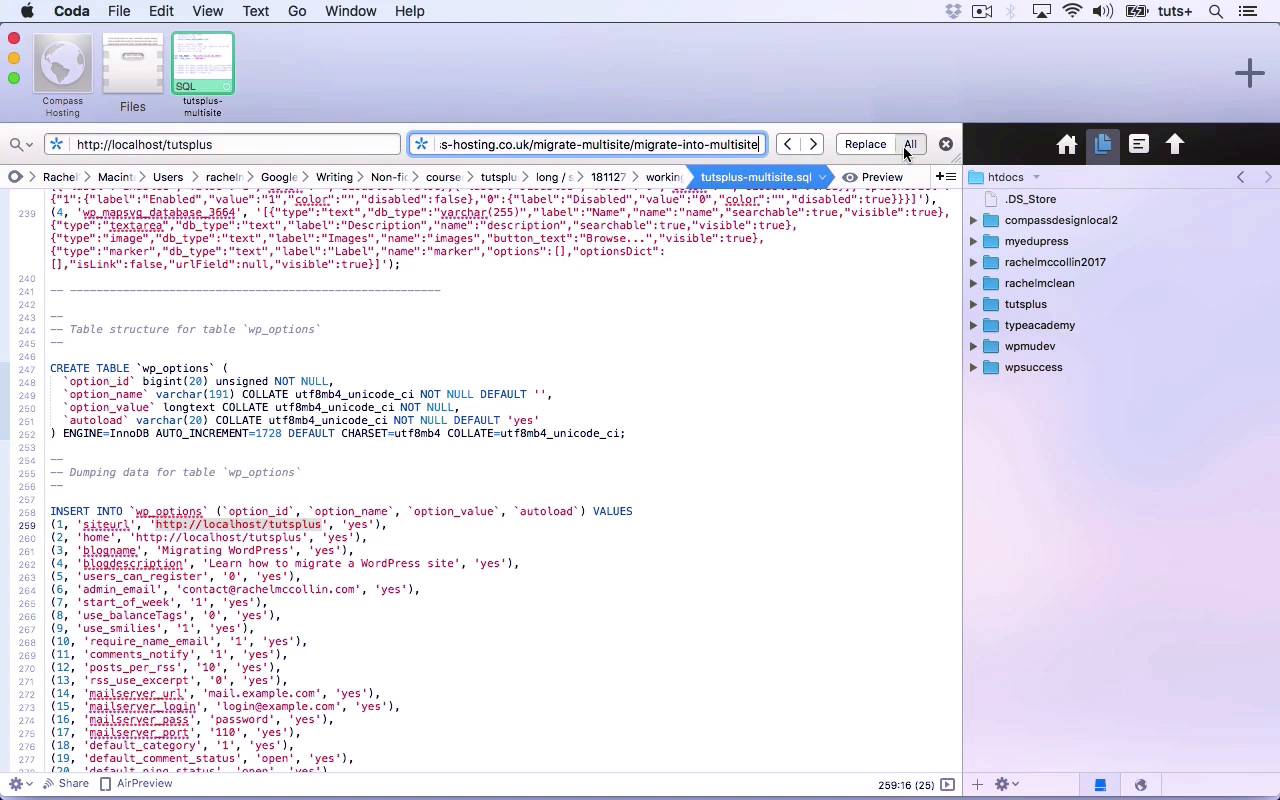 In this lesson, you'll download the files and database from your existing site, and edit the database tables for use in the Multisite network.