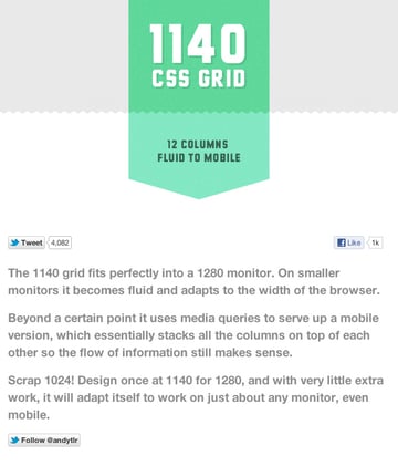 Partner in crime to the responsive layout is the grid. 2011 has seen fixed grid frameworks make flexible improvements, not to mention the appearance of even more tools to help us out. All of the following frameworks, tools and guides cater for today's needs and offer fluidity. Most of these sites also demonstrate great responsive design, as the 1:1 thumbnails below show: