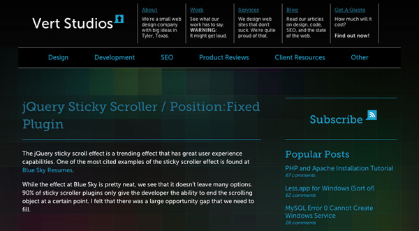 Then there's the idea that some content can scroll up to a point. 2011 saw wide use of this effect; keeping social icons, shopping carts, menu bars, calls to action etc. persistantly in view: