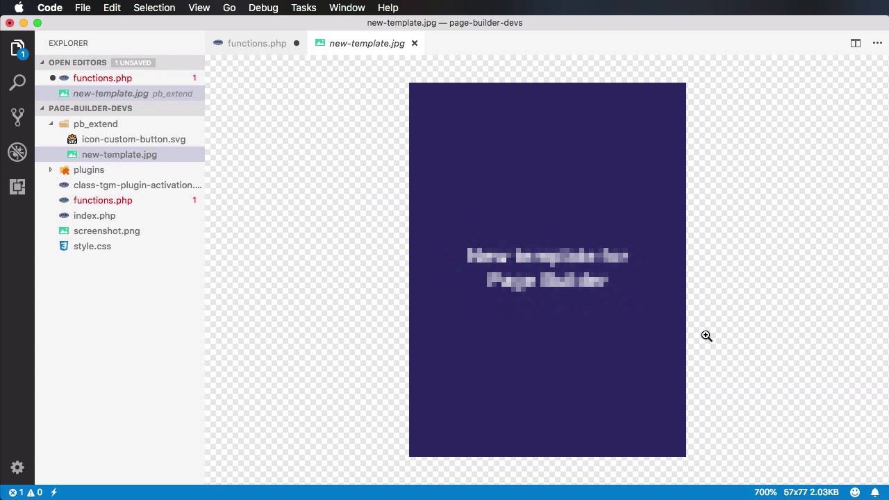 Welcome to the 7th lesson of this course, where you'll learn how to add default templates. So this is a very neat, and very useful functionality of the plugin that allows you to basically ship your theme with pre-built templates. Really cool. So let's see we can do that. Going back to our page here, I created a very simple layout just to demo this functionality. We have a message Text Block and one of our custom buttons. The page currently looks like this and let's say that this is amazing. An amazing layout, and I wanna ship it with my theme, right? So I'm gonna switch to classic mode. I'm gonna copy this text. As you can see, it's entirely comprised of short codes. And then I'm gonna go back to my code editor, and I'm gonna do the following. First, I'm gonna tap into one of the Page Builder functions. So add_action. The function is called vc_load_default_templates_action, and I'm gonna execute my own function pb_add_default_templates. Let's go ahead and create that function, and the inside, I'm basically gonna call vc_add_default_templates. And I'm gonna provide an array with all the necessary information. First we start with the name, so, what's the name of our new template? Let's call it Tutsplus template and then we can specify weight, which is the position of the template in the templates list. This is the first one so we'll say 0. Then we can specify an image_path. We can also attach an image to our template. I have an image prepared here. It's called new-template.jpg. Currently it looks something like this. It's a bit smaller actually, this is suppose to be double the size that you see here. For some reason I exported it at half the size but it's fine, we can change it later. So, possibly you're gonna say get_template_directory_uri, pb_extend/new-template.jpg. Then we can specify a custom class. It's there if you need it but we're gonna use it here, and then the content. This is the actual content of the new template. I'm gonna use this format, content. I'm gonna paste this in. I'm gonna end that content block right there, and we're done. All right. Let's give it a test. So we're going to create a new page that's called Test. Switch to back-end editor, we're going to open Templates, Default Templates, and you can see Tutsplus template right here. We're gonna click it and that will automatically add all the necessary content in my page. So, I'm gonna hit Publish. And now, if we take a look at the page you'll see that it has the exact same structure as my original one. And that's it really. That's how easy it is to add new default templates to Page Builder. And as I said, it's really great functionality because it allows you to ship your theme with pre-built templates that user can simply click on and they'll have an entire page just ready for them to customize. A really, really cool functionality. Now for the final lesson of our course, we're gonna take a look at some smaller tweaks and settings we can use to further customize Page Builder for our theme. That's coming up next.