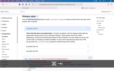 Welcome back to the course. In this final lesson, we'll take a look at components, and utilities in Bootstrap 5, and how to work with them. Let's go. Now Bootstrap has a lot of components as I was saying previously in this course. And you can find all of them if you open up the documentation, and you go to Components. Here, you can see the entire list of all the available ones in the framework. Now, as I was saying previously, when it comes to content, you can write it yourself from scratch, or you can use one of the pre-made components. Because chances are, whatever content you wanna add to your website or web application, you might find a component in the Bootstrap library that already has everything you need. All you got to do is copy that code and slightly tweak it, if necessary, to match your own needs. So let's say that I wanna add some buttons to my website, right? Buttons are a quintessential component of every website and Bootstrap has a couple of different options for buttons. And you can see a couple of examples here from the various styles like primary, secondary, danger, info, light, and so on, to using different tags for buttons like a regular link. A button on input class, button, or type button, submit or reset. You can use outline buttons, and really, once you find the one that you need, let's say I want this one, you can simply copy, Paste it in your page. And here it is, all ready to go. It's already styled, you don't really have to do anything. Maybe you wanna add an accordion for a Q&A or something like that. Well, you can navigate to the Accordion, see it in action here. Copy the code, paste that in. And there it is, then you can go back to that particular component and see all of its options. So for example, you have an alternate style here called flush. And you can simply modify this one. And that's gonna create a slightly different appearance. You also have the option to keep certain items always open and it tells you the instructions here. In this case, you have to omit the data-bs-parent attribute on each accordion-collapse. So that would mean that you'd have to get rid of, These bits, so delete those. And now, you'll see that the accordion items will stay open even if other items are opened as well. So it's really easy to change the behavior of a certain component built with Bootstrap by simply using the options that they provide right here. And the same story goes for all the other components, as you can see there's a big list here. There's carousels, dropdowns, models, navbars, all sorts of good things that save you a lot of time because you don't have to code those things from scratch. Now, I also mentioned some utilities or helpers, and Bootstrap has a couple of those as well. You can find them under the Helpers category here. And I'm just gonna go through a few of them quickly. Let's go to Colored links, for example. All right, let's say we have a link, let's just get rid of this thing. Let's add a link here, and let's say test a link. So by default, this is colored like this, but I can use certain link-classes to colorize link, which is pretty cool. So let's say link-success, it should be this green one. Simply add the class and there it is. See how easy that is? What else do we have here? A ratios. So with this helper, we can actually manage the aspect ratio of certain iframes and embeds and videos really helpful for when you're embedding a YouTube video, for example. And you wanna keep it at a certain aspect ratio when you're resizing it. So as you can see your wrap that in a div class ratio and then ratio dash, and whatever that ratio is, pretty cool. There are also helpers for position like if you want an element fixed at the top or bottom, there are classes for that, sticky, responsive sticky, very nice. There are a couple more here, and I highly recommend you go through these and learn all the helpers or utilities that come with Bootstrap. All right, folks, and that's about it for this course. Version 5 is a great installment of this very popular platform or framework. And I'm sure a lot of people will start using this new version very, very shortly. As I was saying, this is a shorter course so I didn't demonstrate the full capabilities of Bootstrap. But I highly recommend you download this and play with it yourself and determine if it's a good fit for your workflow or not. With that said, thank you very much for watching. I'm Adi and until next time, take care.