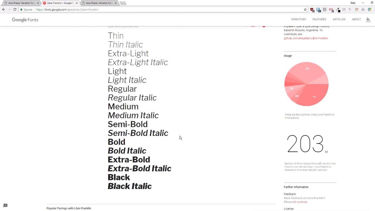 Hey, welcome back to Up and Running With Variable Fonts. In this lesson, we're going to talk about what named instances are and what value they offer you as part of web design workflow. So we're looking at our Decovar instance again. And here you can see we have so many different settings and so many different looks for this font. But if you're trying to manually recreate all of these looks from memory every time, it would get very difficult, very fast. So what we have is the ability for font designers to include something called named instances in their fonts that are something like a bookmark for a particular combination of settings in each of the variables. So if I select this text up here. And then, look over at this instance area on the right. I can see that there's a whole bunch of different, named instances. And when I switch that up, you can see that we get a completely different look. For the font each time we choose one of these named instances. Now, unfortunately the downside right now is that even though this information is inside the file, so far there is no way in CSS to specify that you wanna use one of these named instances. Hopefully, that's something that we'll see come up in the future. But right now, it's just not there. However, named instances are still a useful thing to be aware of as part of working with these types of fonts in web design. Why? Basically, because they give you an easy way to look up combinations of settings that work really well, that you can then reproduce in your designs. But named instances are also useful, even if you don't have the kind of complexity that you have with a font like Decovar, and I'll show you an example. So we have the Libre Franklin font. We looked at this earlier as well. And this is just the regular version of the font that's hosted on Google Fonts right now. You can see that we have all of these different variations of the font, and each one of them has a name. Semi-Bold, Semi-Bold Italic, Bold, Bold Italic, and so on. If we look at the variable font version of Libre Franklin, and we look at the named instances that it has. We have the exact same set of names. So this is actually the italic version of the font, but so we've got Semi-Bold, italic. We look at the Roman version. Then we have Semi-Bold. So you have all of the same looks that we have in the main font. And why is that useful? It's useful because this can act as a guide for us to recreate in CSS the same looks that we have in the regular version of the font. So if we know we want to reproduce Bold Italic, then we can take a look at the italic version of the font. And have a look at the named instance that represents what we want. And then, we can see the value that we need to put against the axis that's controlling how the font looks. And we're gonna be digging into putting together code later, so I'm just gonna quickly show you how this might look in application. This is the code for the demo that I showed you earlier in the course, illustrating how much faster variable fonts can load. And what I've done here, is just create a class name for each one of those named instances. And then, I've carried the settings over from that named instance, into my CSS. This one just uses that one axis, so it's relatively simple to code in CSS. A little bit later, we'll go through how you can handle more complex sets of axes as well. So that gives you an idea of what named instances are, how they relate to access settings, and how they're actually useful in web design, even though we can't access those named instances through CSS just yet. All right. So, now you're getting your course the fundamentals of variable fonts, which basically boils down to their axis and their named instances. The next question is, well, how do you actually find variable fonts? Variable fonts is still relatively new, so they can be a little tricky to find. So, in the next lesson, we're gonna go over how you can best look for variable fonts. So, we'll see you in the next lesson.