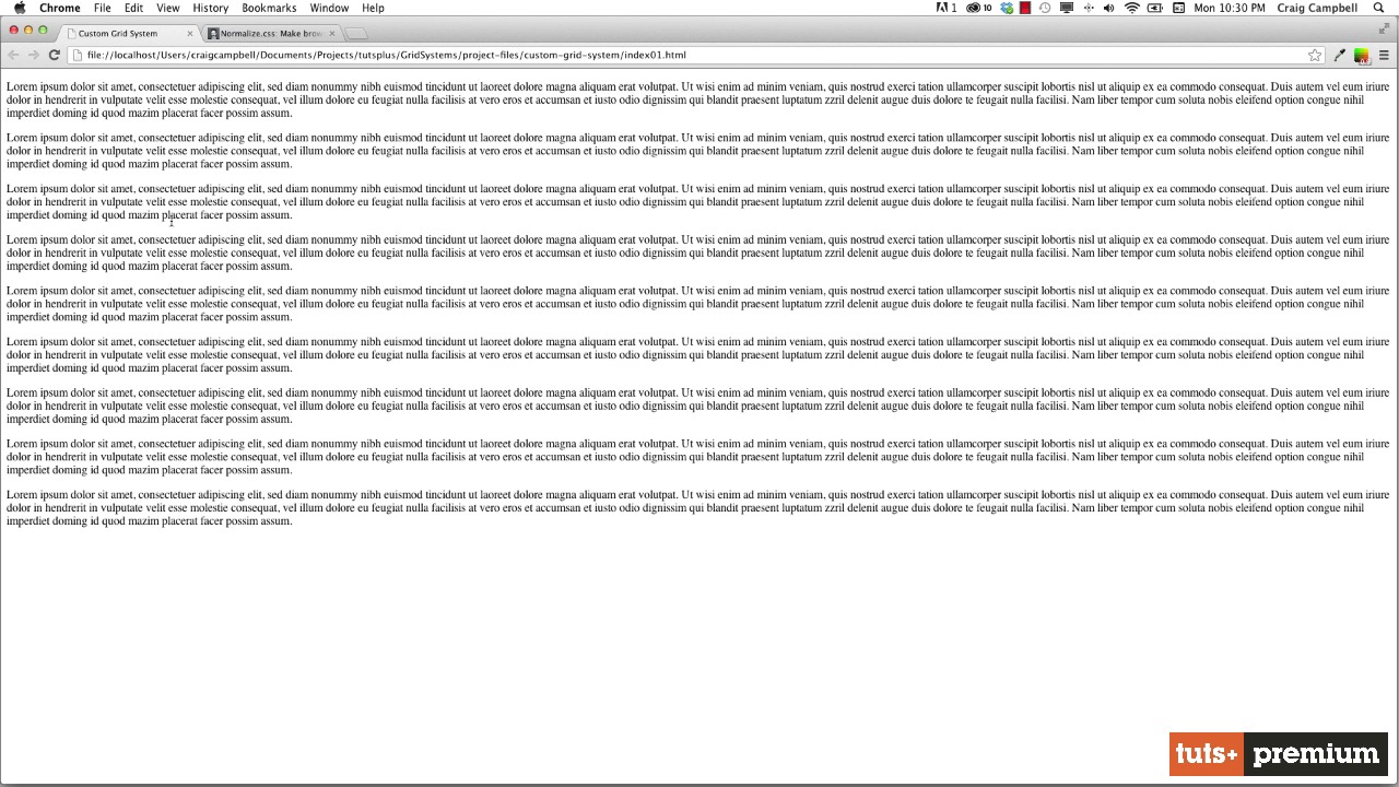 In this lesson, we download the Normalize.css stylesheet as a base to reset some browser styles for our grid system.