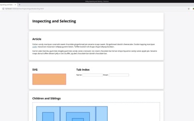 VisBug has two excellent inspection tools that allow you to quickly look into the regular properties of any given element or check out the information relevant to ensuring accessibility. It also provides multiple ways to select items and to move around the page, selecting different elements via keyboard shortcuts.