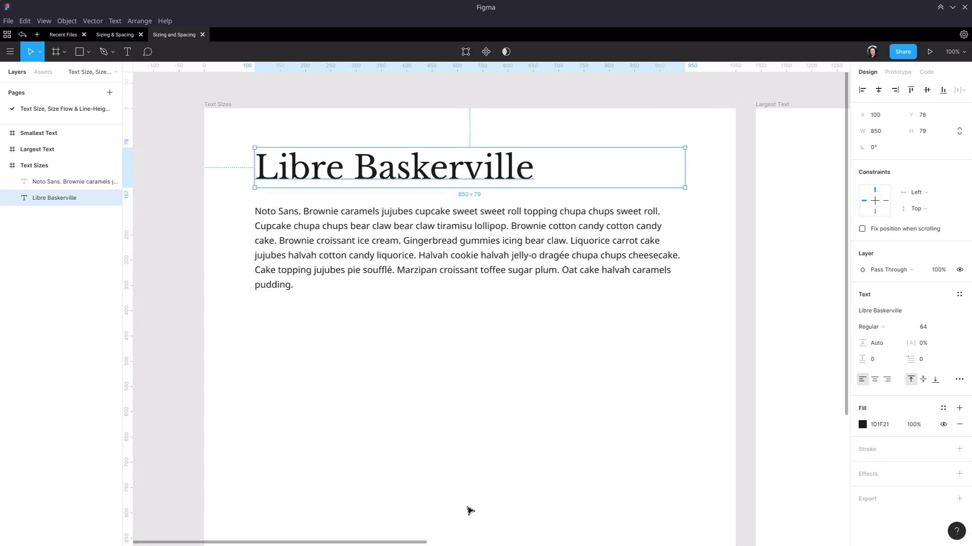 Hey, welcome back to Web Typography Basics in Figma. In the last section of the course, we went through the process that you can use to select fonts that work well in your design. And now we're gonna move on to controlling the text size and the flow of different sizes that you apply to the fonts that you have selected. So we've been going through and applying these techniques to these two fonts that we talked about earlier in the font pairing section. So we're gonna be using Libre Baskerville for our headings, and we're gonna be using [INAUDIBLE] sans for our default text. So I've just created a new document in Figma. I've set up a new frame. This is 1050 pixels wide by 1200 pixels high. What we're gonna do is work up our text sizes in a layout that's gonna be fairly relevant to most websites, a fairly common width. Though in this case, I've sized the text boxes to be 850 pixels wide. That's both the default text and the heading text, both of those boxes 850 pixels wide centered inside this prime. And we're going to be creating text sizes for our default text and each of our six levels of headings. Obviously in a design there can be all kinds of different texts that you need to style but these are always the common elements. And they are a good place to start laying down the foundation for your typography's text sizing. And there are a couple of different schools of thought with how you should approach deciding what different sizes to use for different elements you need to create your typographic design for. But before we get into that, I'm just gonna touch on some of the most common mistakes that you see come up in typography design. And we're gonna keep avoidance of those mistakes in mind as you make a decision on what sizes to use. So I'm just gonna rattle off the list really quickly, and then we'll reference these mistakes again as we go through implementing the methods that we'll be using. So one, one of the most common mistakes is having you're heading one be far too large so it ends up too big to get anything more than a couple of words into a headline. And it forces itself onto too many lines. Now on the other end of the spectrum, it's also quite common to see the smallest size heading be too small. So the h6 level heading, sometimes you'll see it come up looking too similar to default text so it's too hard to tell it apart from default text. In some cases, I've even seen designs where the h6 heading Is smaller than the default text itself, then that doesn't really make sense for a heading style. Another problem that can commonly come up is having headings be too similar to one another. So it's too hard to tell the difference between one heading and the next. Another thing that can catch you is not factoring multiple lines into your design decisions when you're creating heading styles. As you can see on the screen now, we have that Libre Baskerville heading in there. But how's it gonna look when it gets pushed onto two or three lines? We have to make sure that we test that as part of the design process. Another thing that can come up and does come up often is when a design hasn't considered putting two adjacent headings. So for example in h1 and in h2 or in h2 and in h3 right on top of each other. So for example, when the end user of the site is creating an article or a blog post, they might want to have a section of their article titled with an h2 element. And then they might wanna break it into multiple h3 sections. And if you haven't considered how that h2 and h3 element look when they're stacked on top of each other, then you can end up having them too crowded with one another, pushed too far apart. Whatever the case may be, you can end up with a situation where it makes it hard for the end user to create the kind of structure in their writing that they're trying to put together. And then finally, another thing that happens often is not accounting for the amount of space that needs to be led between headings and paragraphs. So you have to get the spacing right for headings, stacked one on top of the other. And you also have to get the spacing right for those headings stacked on top of the paragraphs of text that they're introducing. Now that sounds like a lot of stuff, but what this all really comes down to is just designing for realistic content rather than just controlled dummy content. As much as you can, you should try to simulate the way that your typography is gonna be used when someone's producing real content with it. And that's what we're gonna be doing as we go through and set up our text sizes and the flow between those text sizes in the section of the course. And one of the methods that you can use to decide on the text sizes to use in your typography is by incorporating a modular scale. In a nutshell, you take a particular number, say 1.2, you start with a base size. And then you keep multiplying a font size by that number, that 1.2 or whatever other factor you're using to get a smooth grade from your smallest text size up to your largest. So there's an article linked in the notes below this video. If you're interested in that approach, then have a look at this article and it will get you started on using that technique. You can also visit the website modular scale.com and it shows you an example of how a ratio can be applied to make a modular scale. So with this example, we have a ratio of 1.5. This might represent your heading one tag, heading two, three, four, five, and six. And then this would be your normal size text. And with this, this is probably gonna be a bit too large for heading texts so you would probably wanna use a ratio a bit more like, say, 1.2. However, that said, we are not gonna be using this particular method in this lesson. Instead, I'm gonna take you through the method that I have found has worked best for me over the years. And the reason that I've found that it works best is that sometimes I find that you need to have a little bit of wigg