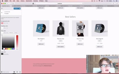 Okay, so were gonna move on. And we done WooCommerce settings, so now were going to look at Storefront Theme, and I'm gonna show you how to install and customize the theme. So we finally get rid of this massive great box at top of my screen, so let's click the Let's go button. While it's launching, I'll have another drink. That launches the customizer for us, and there's a little tool that you can go through here if you want to. I'm gonna give you that tour instead, so we won't look at that. So here's my store, now that I've got storefront activated. So you can see I've got a welcome page as my home page, I've got my latest products listed first. My products are on sale and my best sellers, and WooCommerce automatically identifies those for you and helps you market those products. But you can see that at the top, because I selected to display categories and products, we've got category images here and they're missing. And I'm going to add those a bit later on so don't worry, so let's customize it. So the site identity open running with WooCommerce is not just another WordPress site. It's my fab store, so if you wanted to you could add a logo up here and an image for your site icon which will appear in the browser up here. But I'm not gonna do that for now, I'll click Save and Publish. And then I'm gonna go back to looking at the header. So I can customize the header here as well, and I'm gonna change the background color of the header. And I'm gonna use a shade of pink, so let's scroll up so we can see that, that's a bit too dark, let's go with that okay. So that looks a bit horrible now, with all the black, so I'm gonna change the text color and make that white and the link color as well. So I'm already adding a little bit of branding to my site. So I'll Save and Publish that, and if you're familiar with the customizer you'll have done this before. I'm gonna do something similar to the footer, but first what I'll do, is I'll copy the Hex code for that color there that I've used in the header. I'll go into the footer, I'll select the background and I'll paste that in. Let's scroll down so we can see how that looks, it's just wearing away and doing its thing. And again I'm gonna change my heading color and my text color to white and I'm gonna make the link color a, that's not very nice is it, a pale pinky gray sort of color. Okay, so I click save and publish to save that, and then go back and I can change the typography as well. So this isn't actually the typography as in the fonts, but it's the colors. And the only thing I'm gonna change here is the color of my links. And So I can Publish again, and then I'm gonna change the button color so that that matches as well. Now I'm going through this quite quickly, because I'm just changing a few things to customize my store. But you can see I've already got some branded colors there let's change the color of the text on the buttons as well. There we go, right so my buttons on my header and my footer all look nice and consistent. If I wanted to I could obviously add a logo and some images there as well. So here you can customize whatever you want, you can also add your own additional CSS. You can either do that by typing that in here, or you could do it by creating a child theme of the storefront theme. Now if you do run your own CSS don't edit storefront theme directly, because what happens is when you update your storefront theme which you should be doing to keep it up to date and secure, is that you'll lose everything that we've done. So never ever, never please edit a third party theme plugin directly you should always create a child theme for a theme that you want to make changes to. So that's the customizer, I'm gonna click Save and Publish to save all my changes there and then close that down, and let's take a look at the front of our site. So, that's my homepage, and I'll come to these images shortly and here's my shop page. So that shows my products and categories as well, so you can see there's a grid with more products there. So that's the storefront theme, which we've just looked at, let's just check whether there are any more questions. No more questions have come in during that section. Sebastian has said thanks for the non-answer to your question about Google Calendar which I'm hoping you'll get from her, and Adam. But let's move on to our final lesson which is Product Settings.